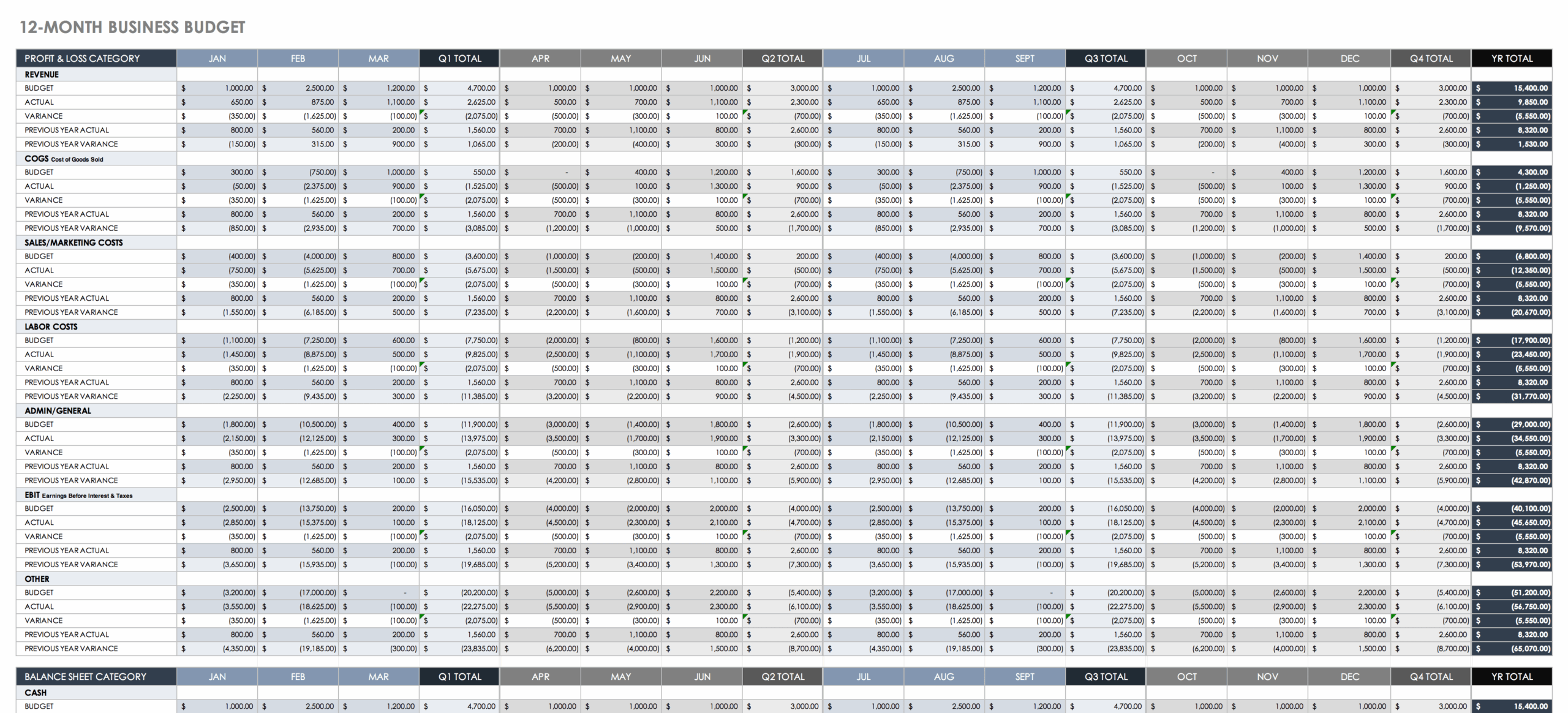 12 Month Business Budget Template In Excel Google Sheets
