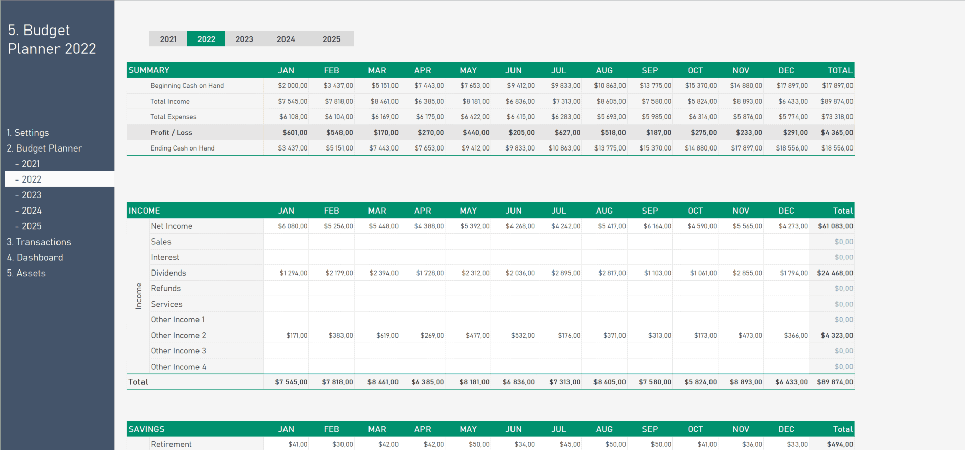 Start by filling in your current financial situation, including your monthly income and expenses. Then, set specific goals for each year, such as saving for a vacation, paying off debt, or increasing your emergency fund. The template will automatically calculate your progress and help you stay on target.