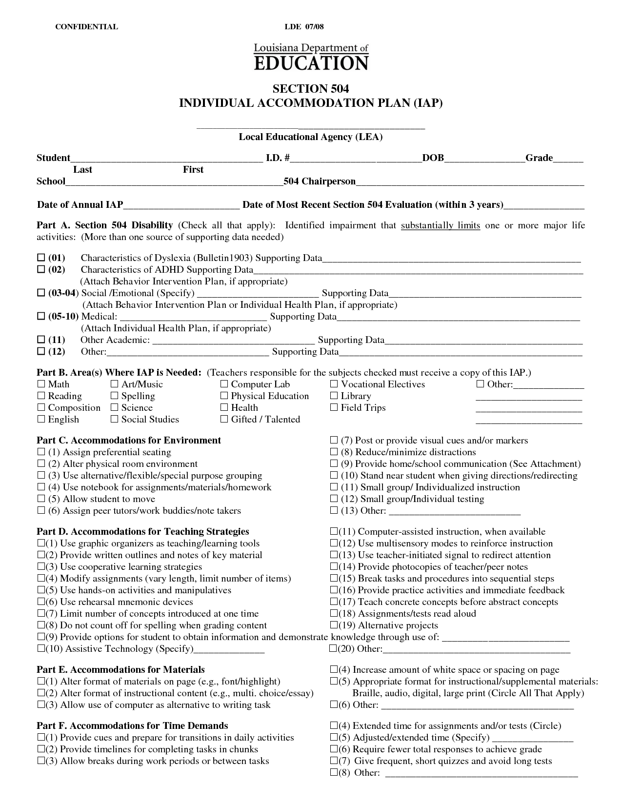 504 Plan Template Adhd