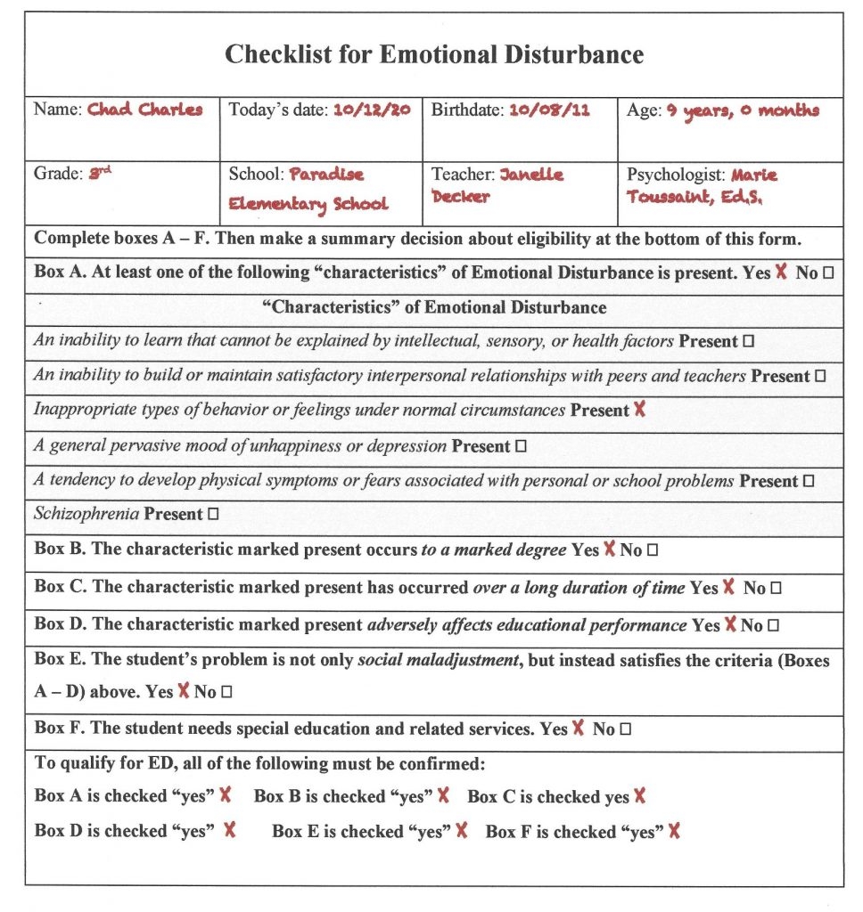 Emotional Disturbance And Section 504 Social Emotional Assessment In Schools