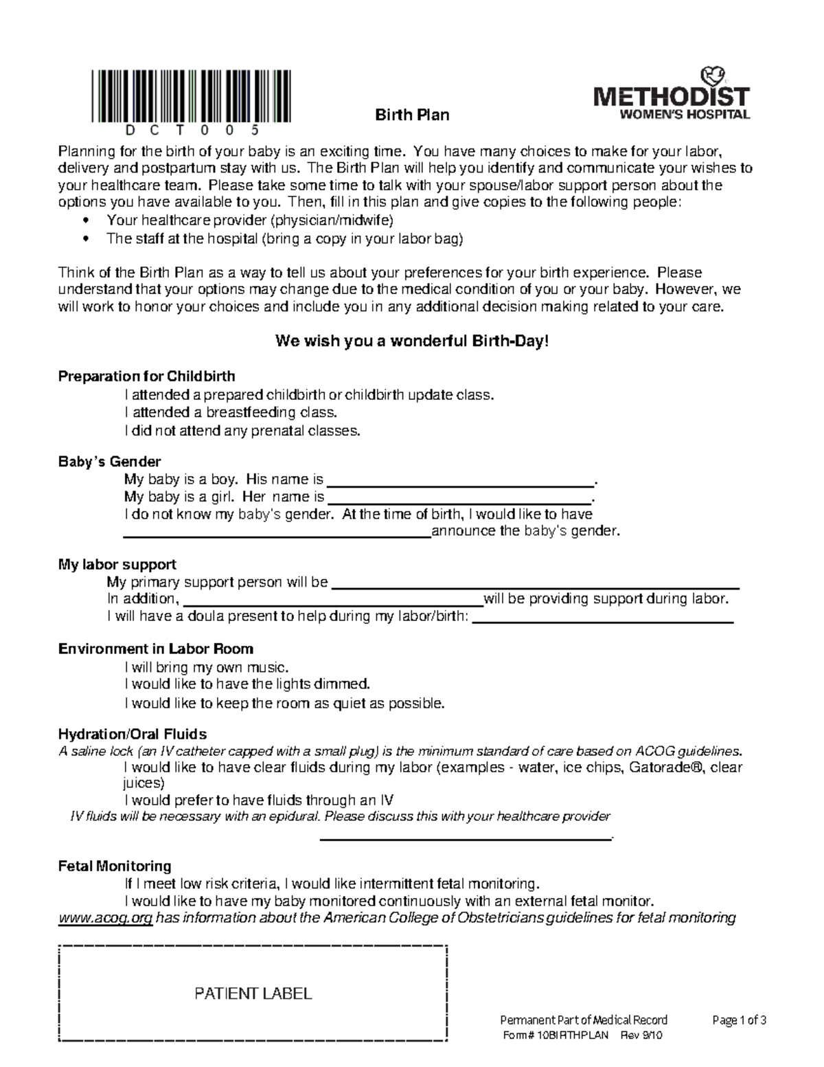 Acog Birth Plan Template