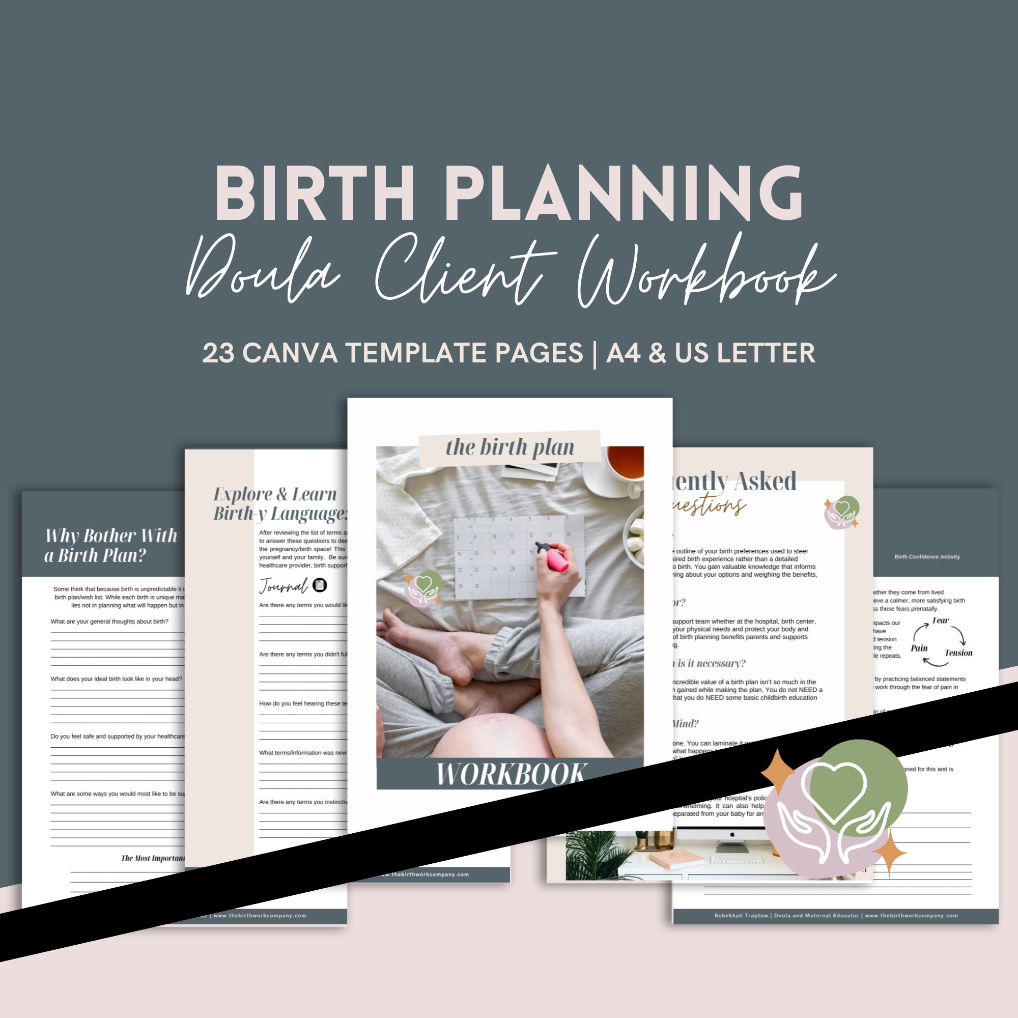 Labour U0026 Birth Planning Workbook Customizable Birth Preferences Guide Doula Client PDF Canva Editable Template Etsy