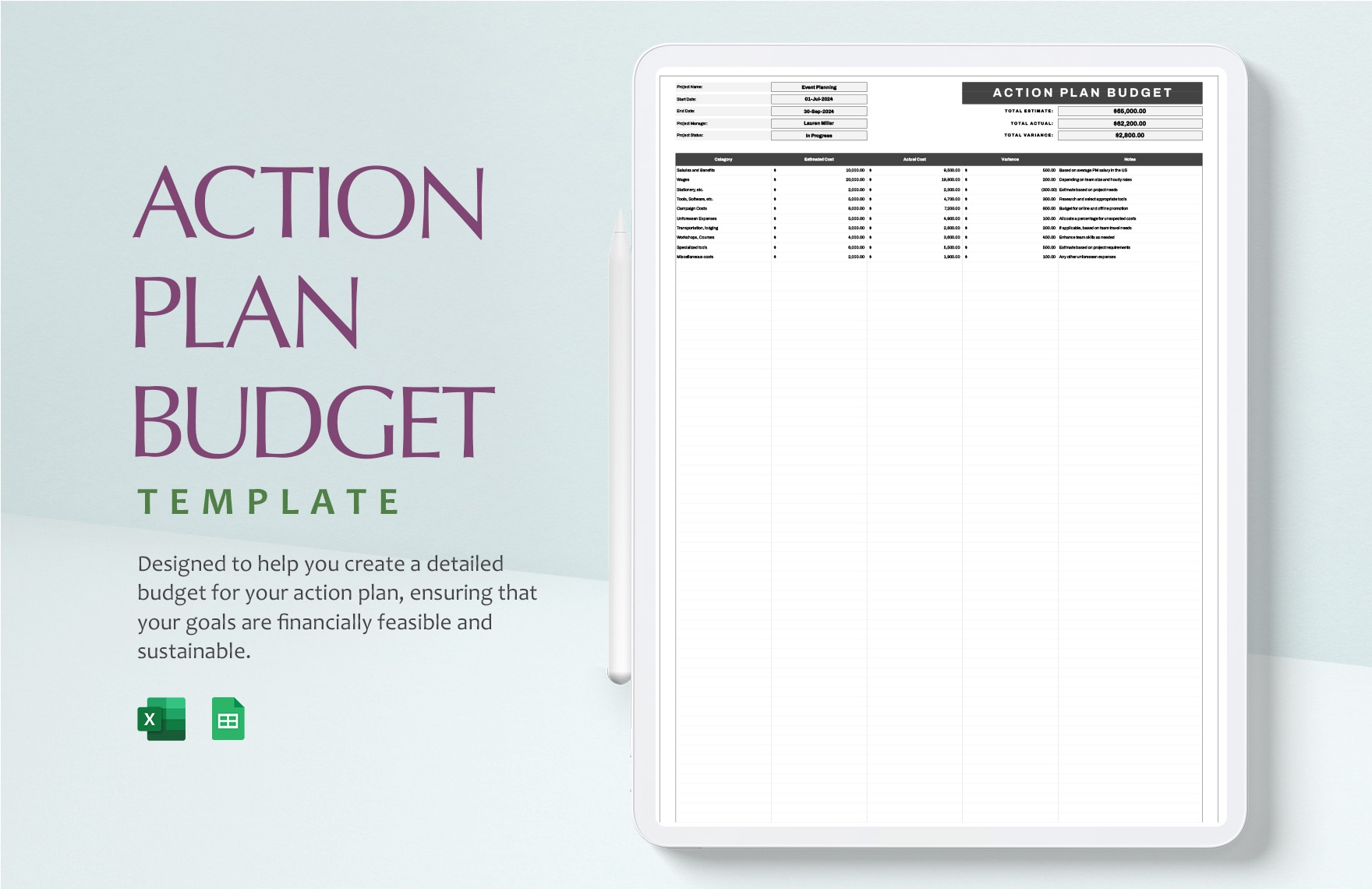 Action Plan Budget Template In Excel Google Sheets Download