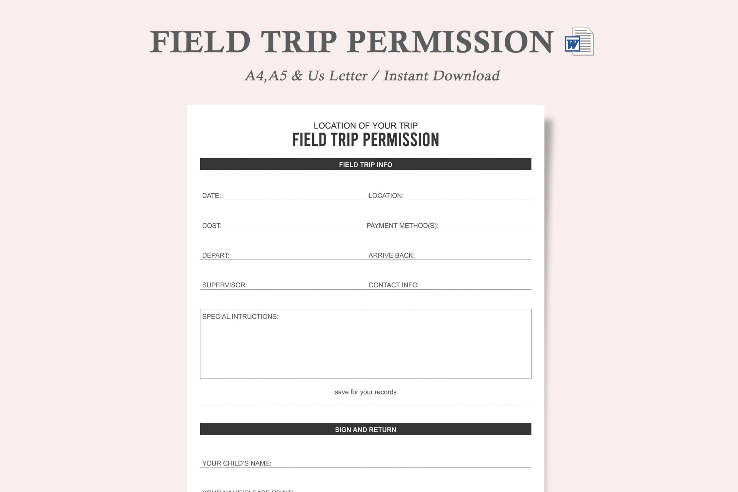 Field Trip Permission Form Field Trip Permission Slip Field Trip Form Field Trip Slip Etsy