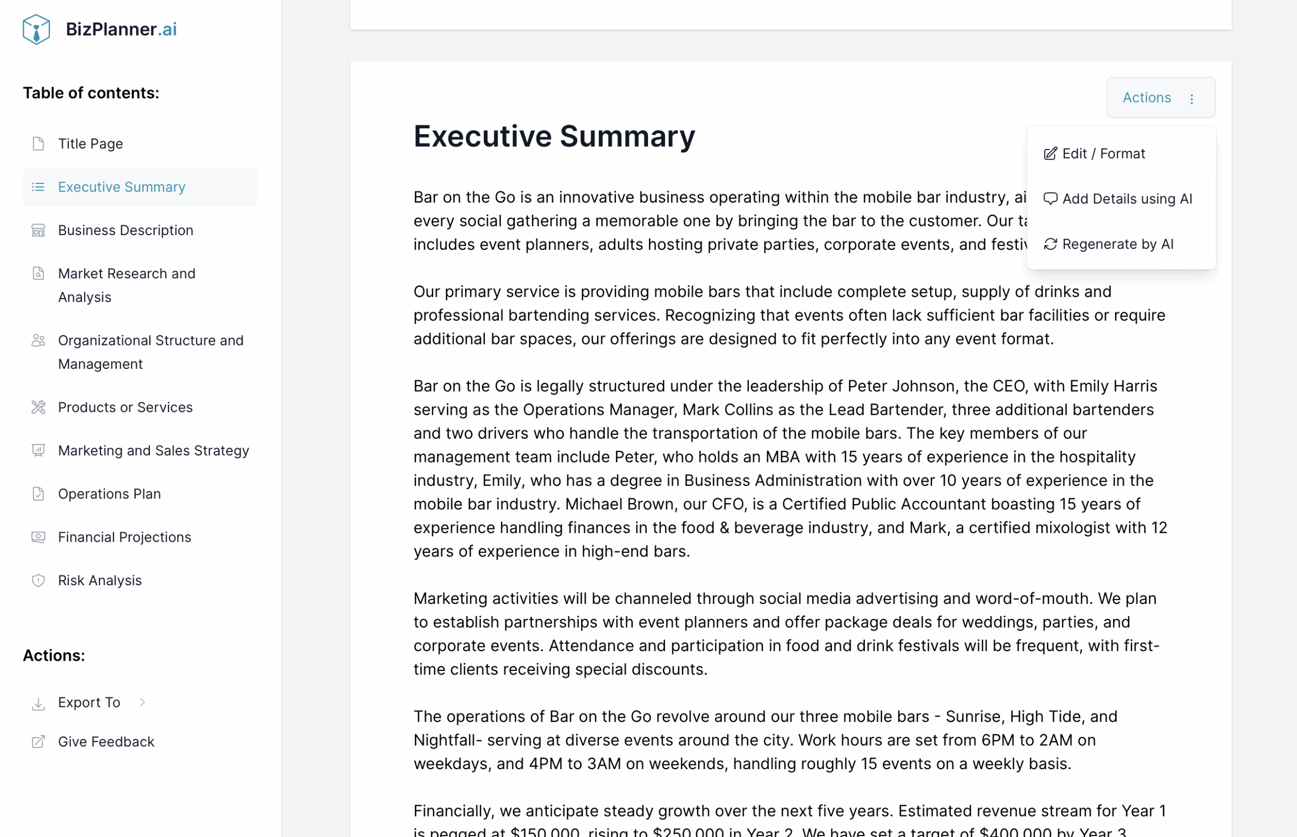 Bar Business Plan Template