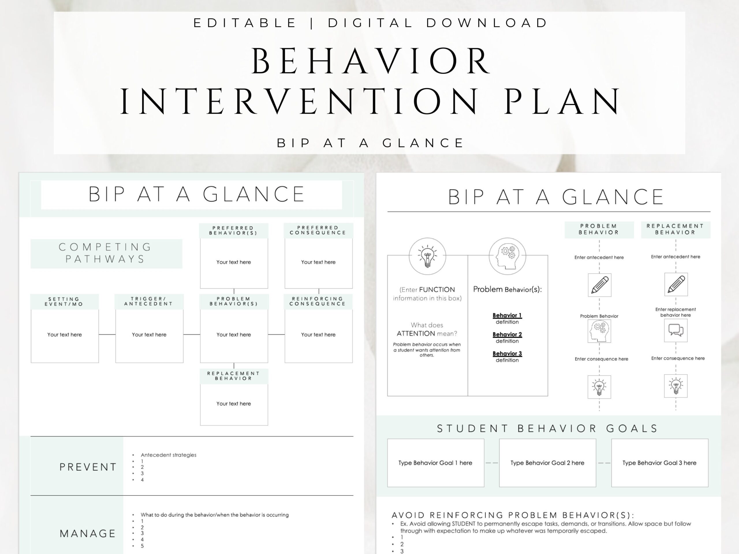 Behavior Intervention Plan BIP At A Glance Digital Download