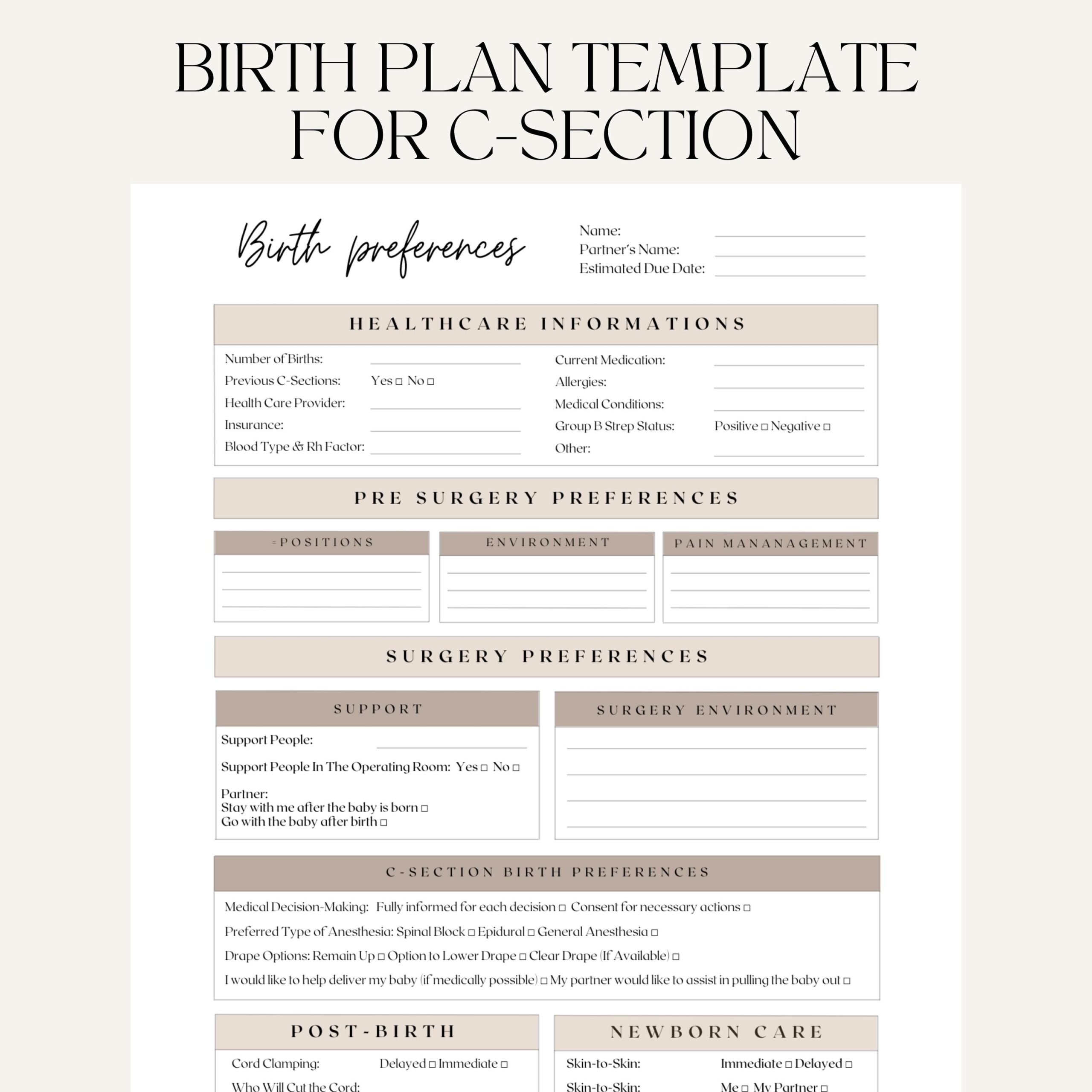 Birth Plan Template For C Section