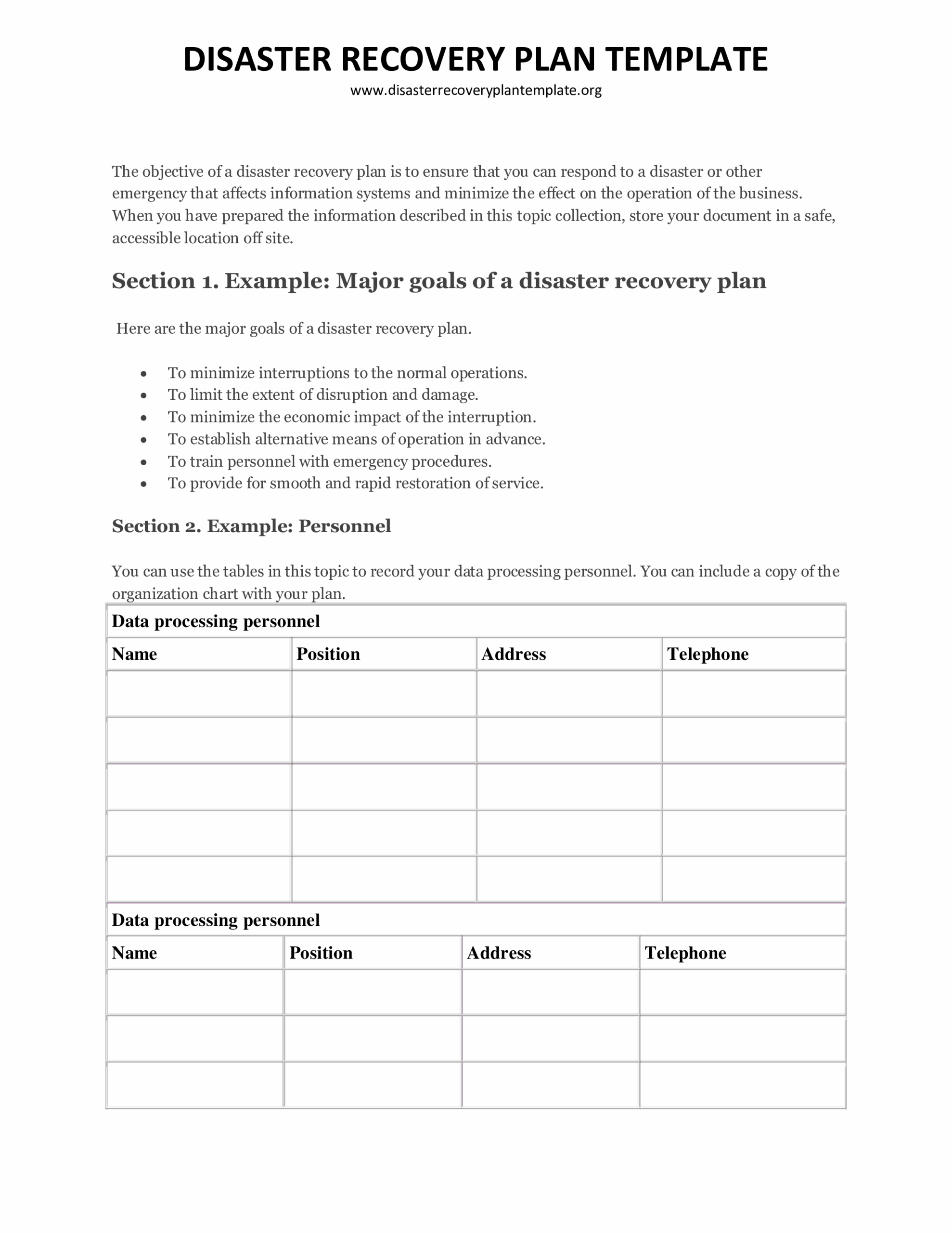 T l charger Gratuit Disaster Recovery Plan Template
