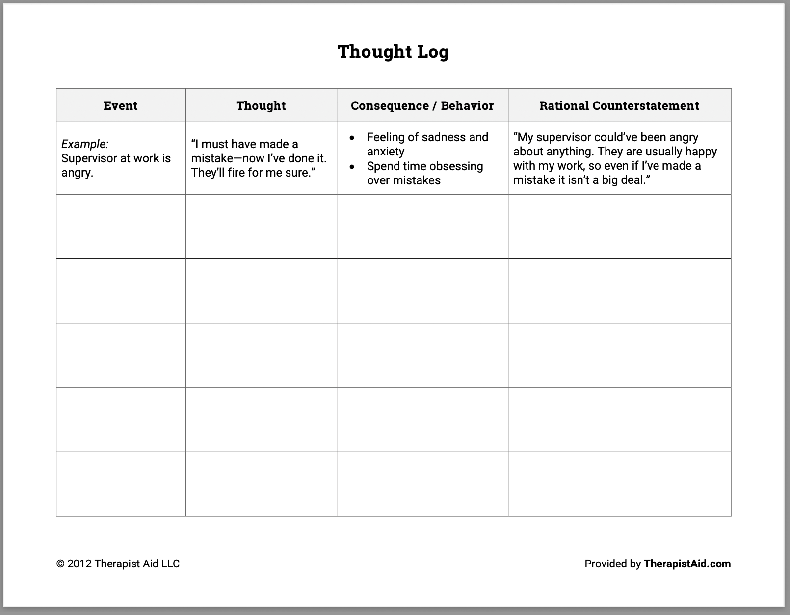 Cognitive Behavioral Therapy Worksheet Template U0026 Example Free