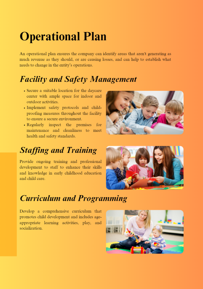 From outlining your business goals to detailing your marketing strategies, a childcare business plan template can provide a roadmap for your venture. It can help you attract investors, secure loans, and ensure that your daycare center is financially viable.