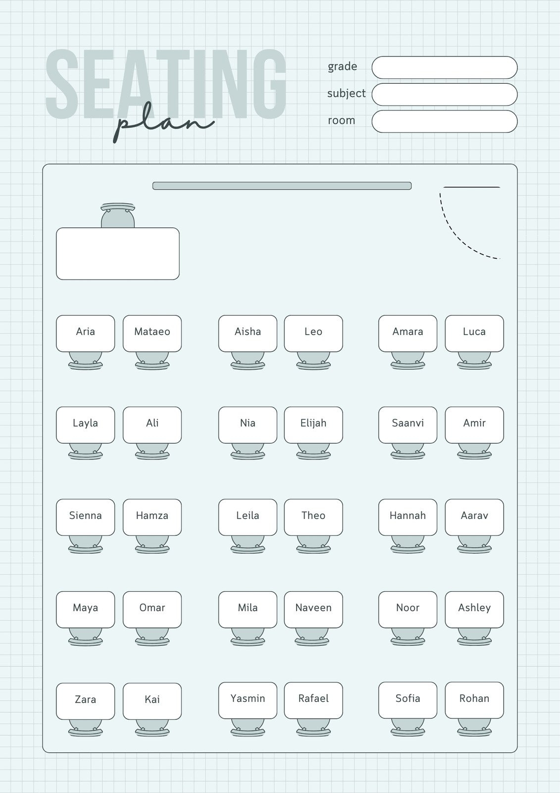 Classroom Seating Chart In Illustrator PDF Download Template