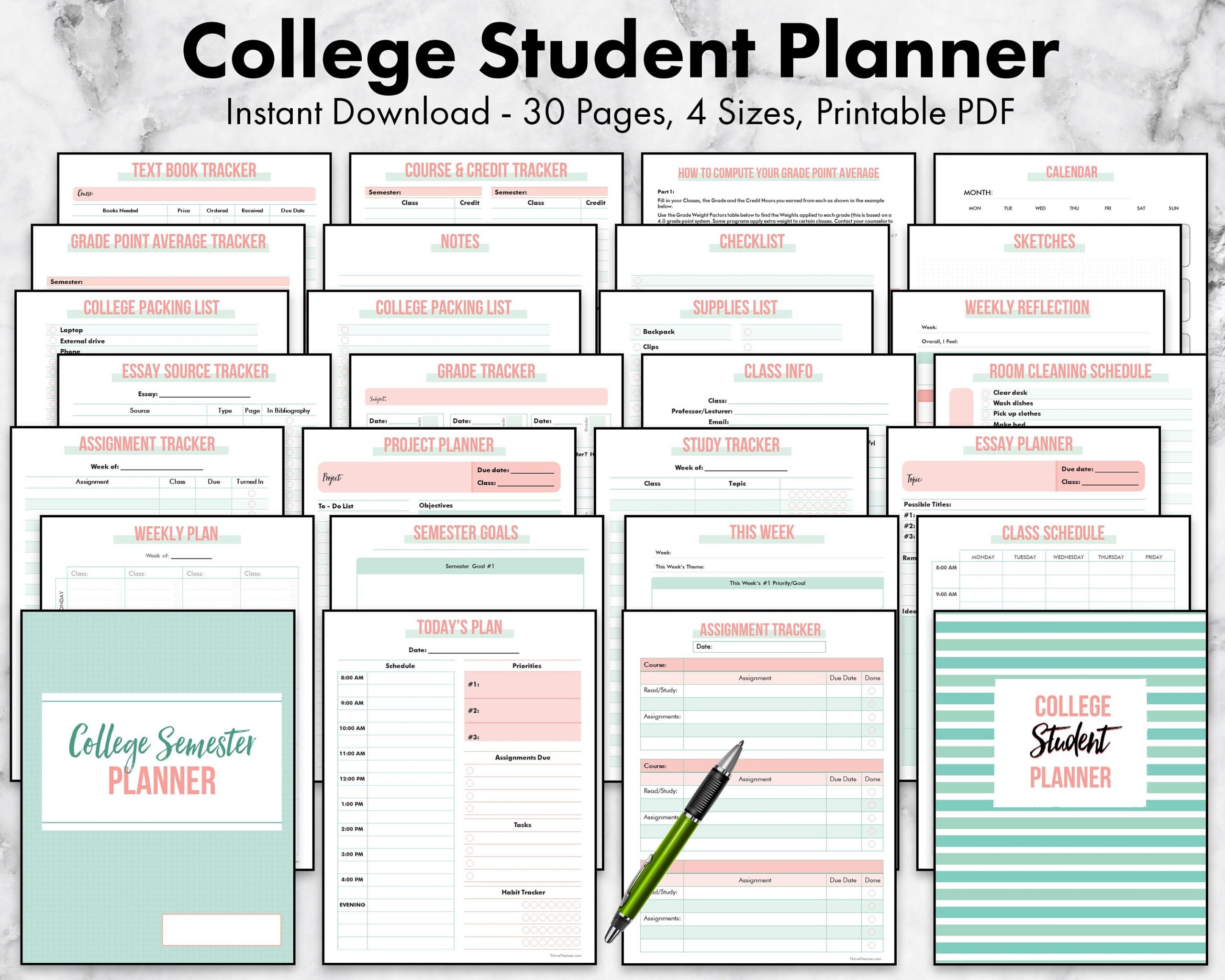 College Student Planner Printable Undated University Academic