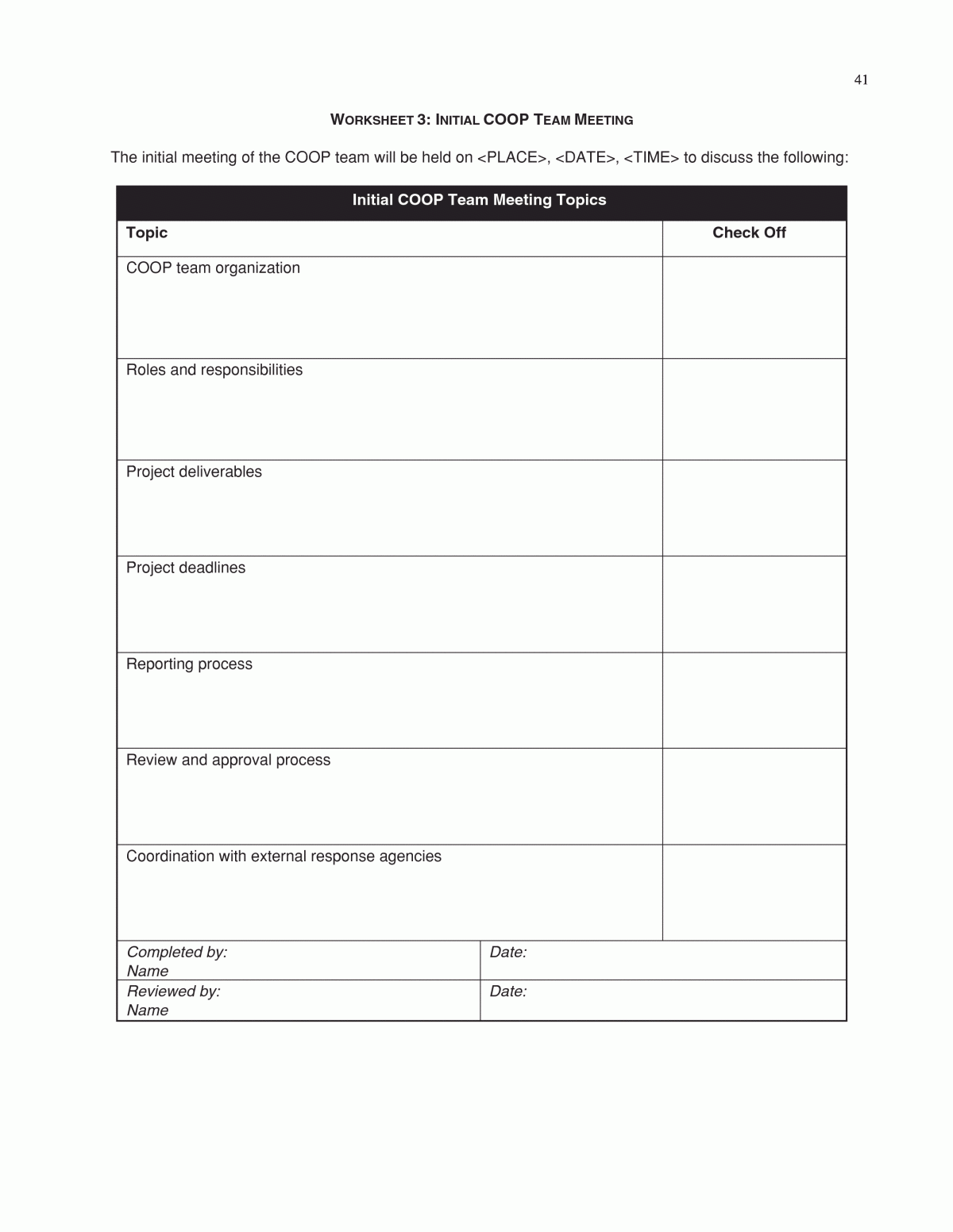 Worksheets Continuity Of Operations COOP Planning Guidelines For Transportation Agencies The National Academies Press