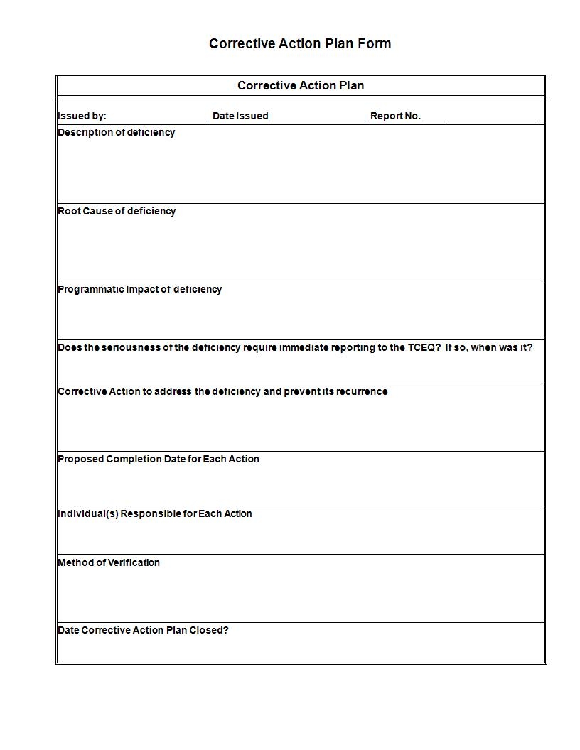 Free Printable Corrective Action Plan Templates PDF Word Excel