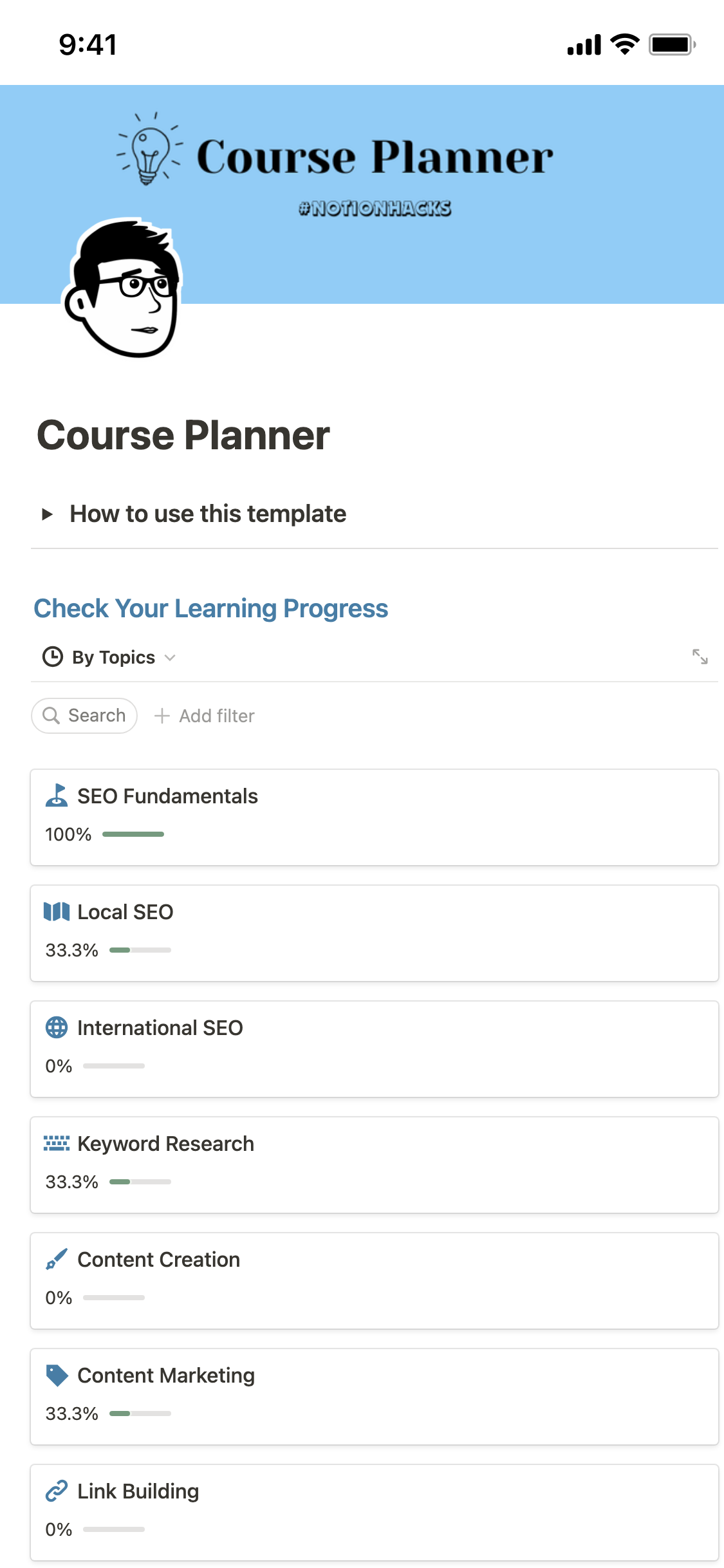 Course Planner Schedule U0026 Learning Progress Template By Cliff