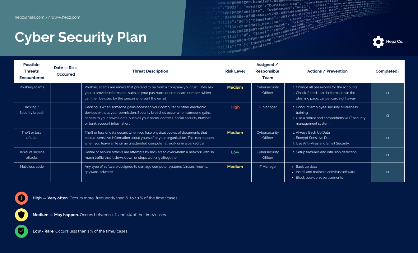 Creating a Cyber Security Plan can seem like a daunting task, but with the right template, you can streamline the process and ensure that you cover all the necessary bases. With a well-thought-out plan, you can mitigate risks and respond effectively to any security incidents.