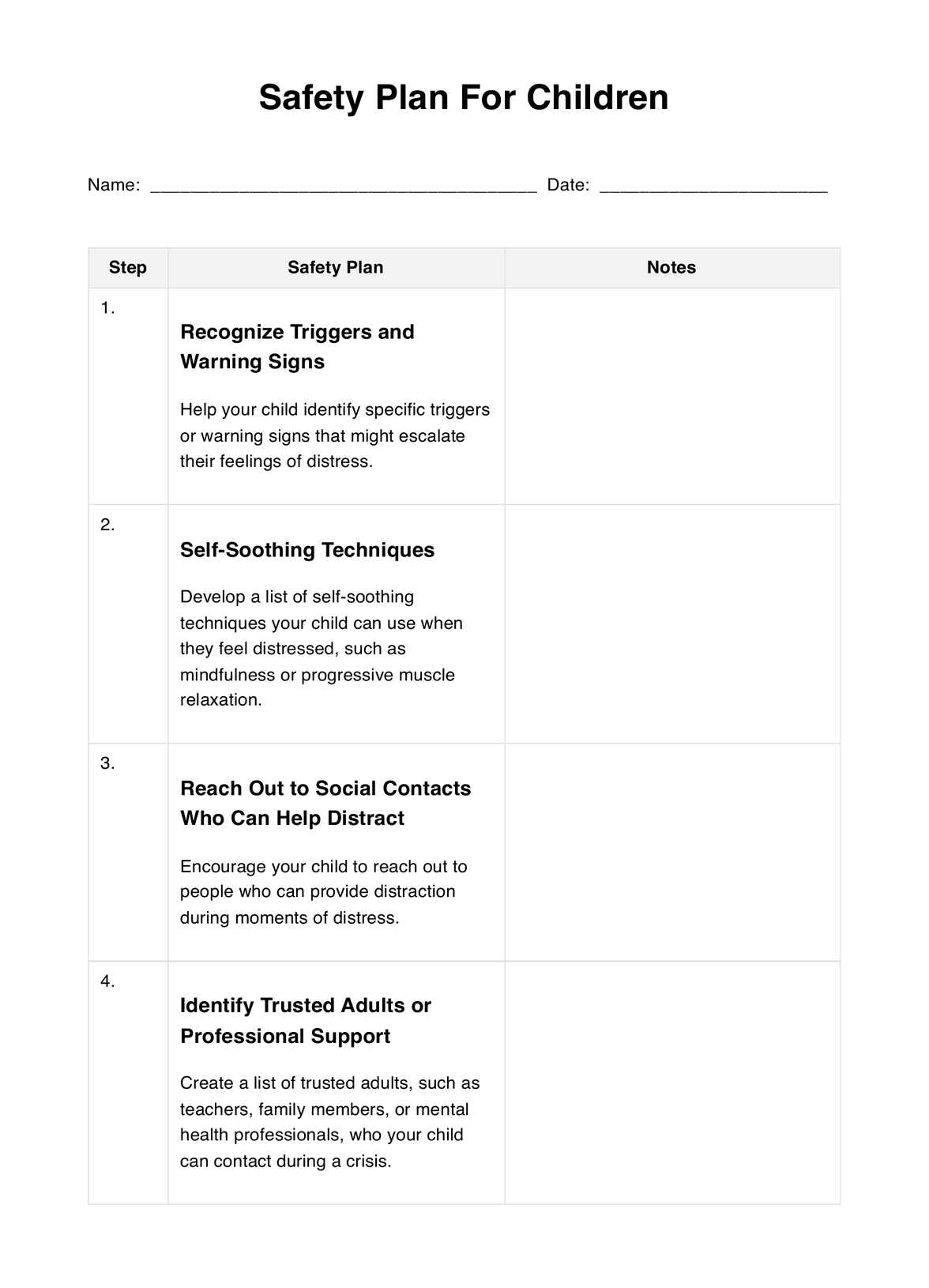 Free Printable Safety Plan Templates PDF Childrens Teens Students
