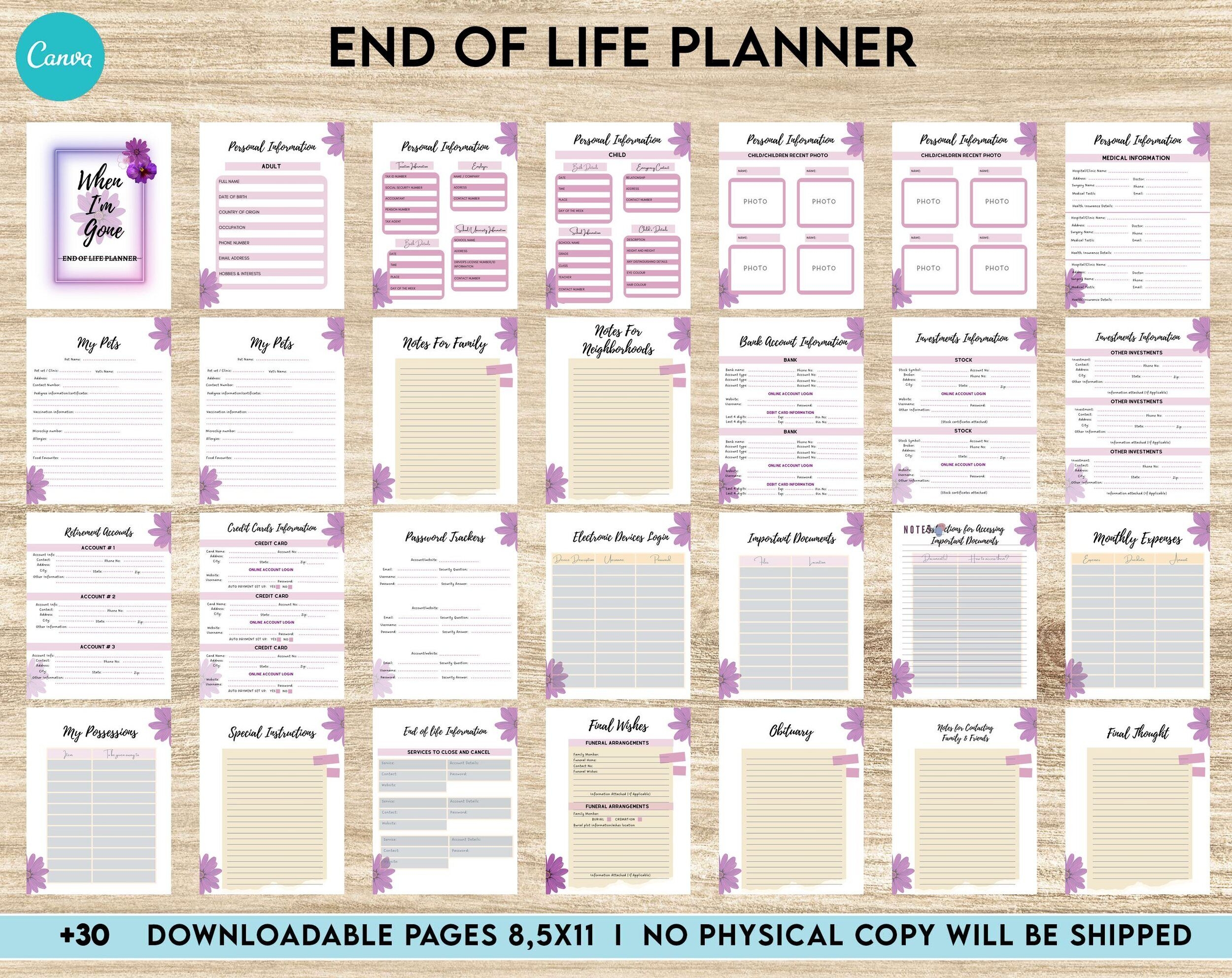 End Of Life Planner Final Wishes Planner What If Emergency Binder Editable Templates Legacy Planner Funeral Planner Estate Planning Organizer Canva