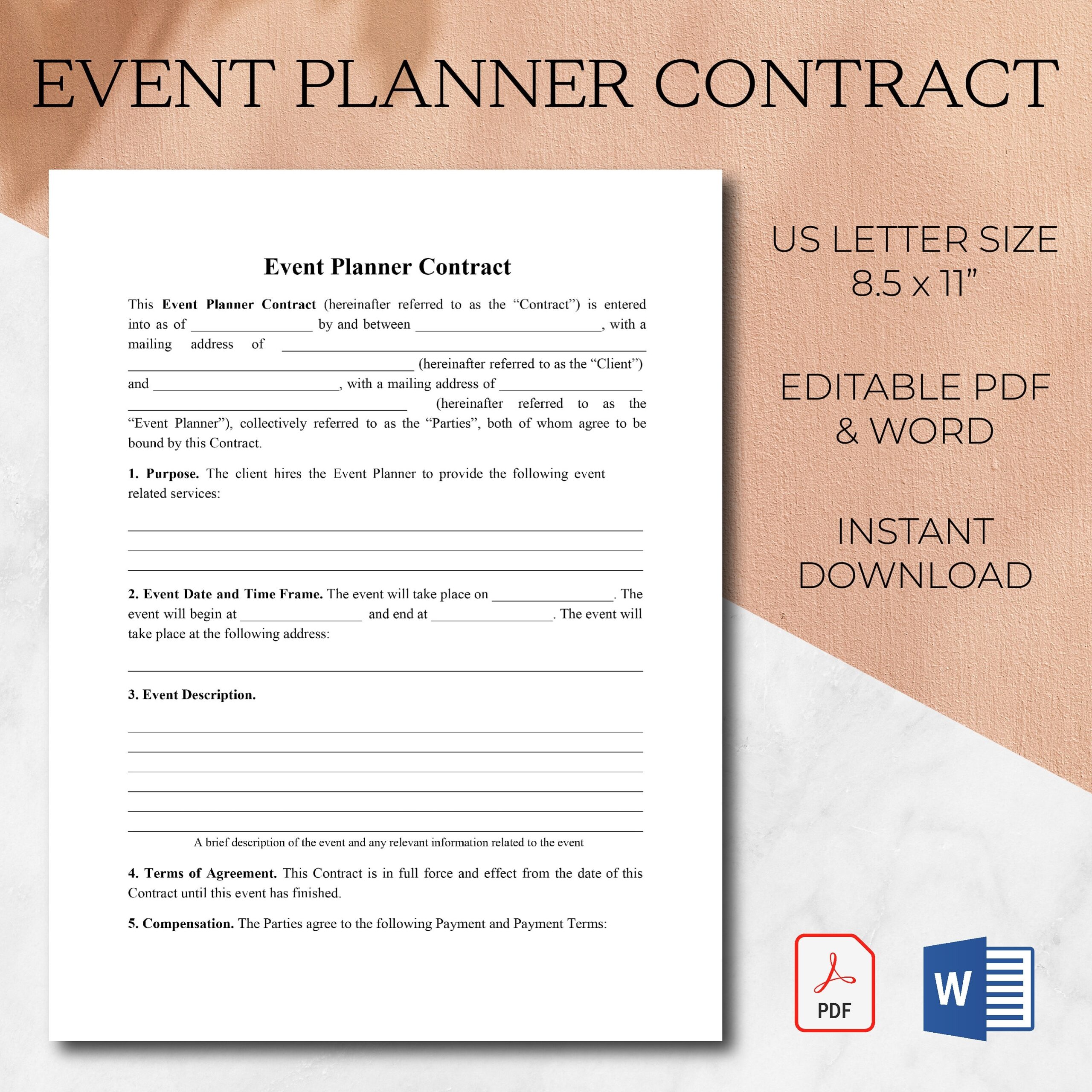 Event Planner Contract Editable Template Event Planning Agreement PDF Microsoft Word Template Event Planning Form Wedding Planner Form Etsy