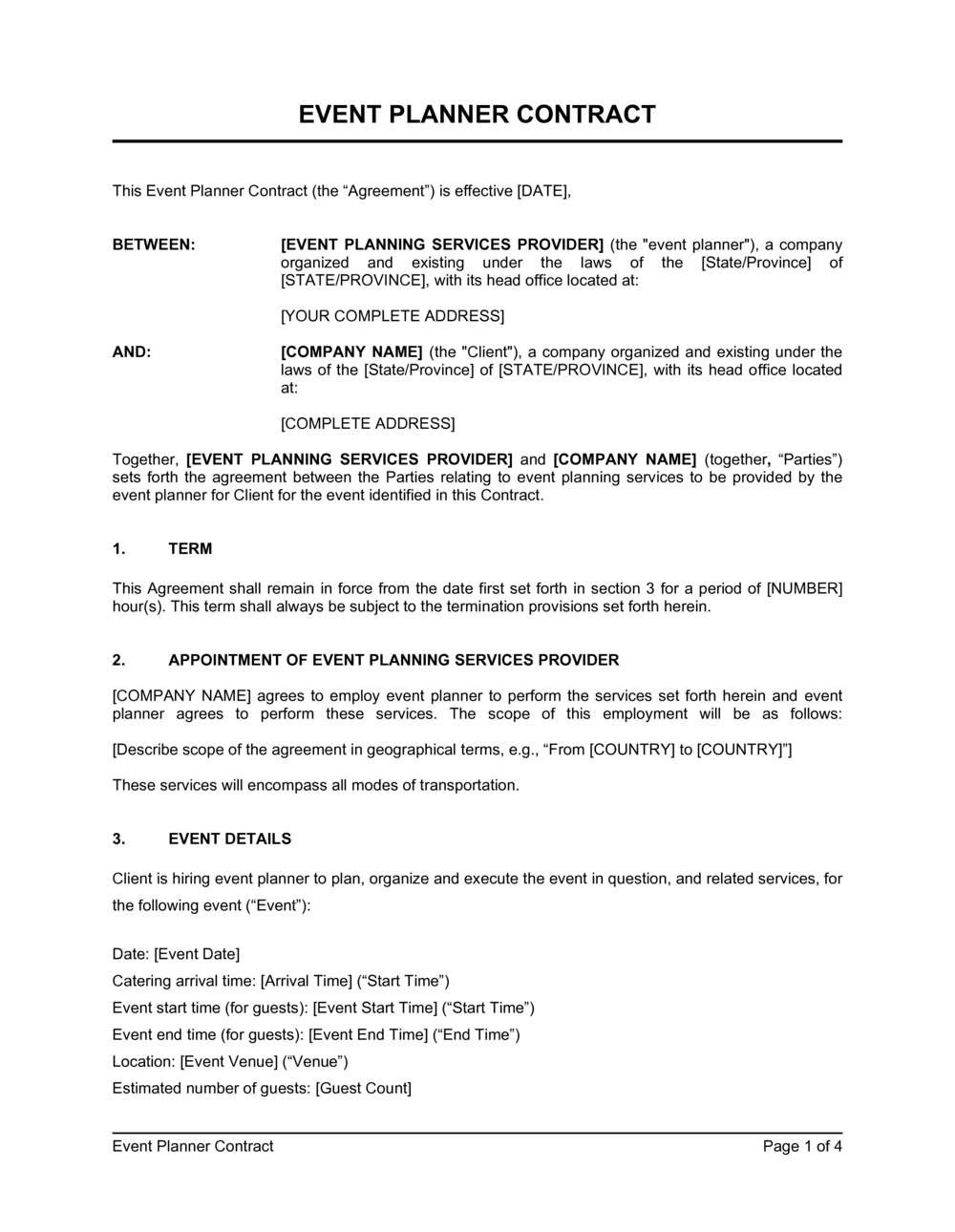 Event Planning Contract Template Free Download Easy Legal Docs