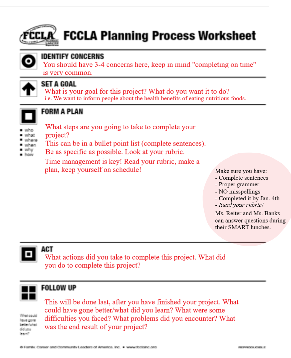 Planning Process Fccla Template Worksheets Library