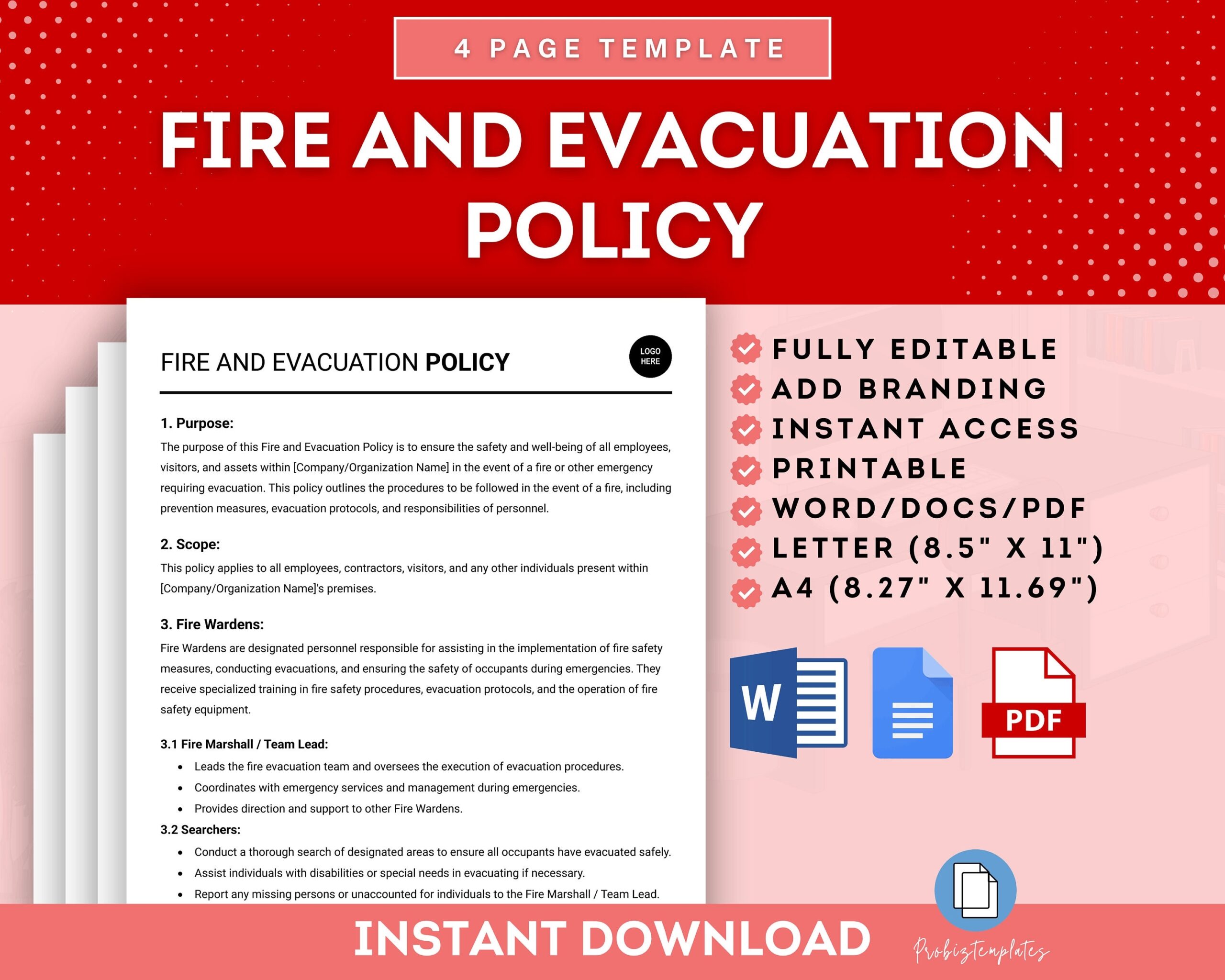 Fire And Evacuation Policy Template Fire Safety And Evacuation Policy Fire Emergency And Evacuation Policy Fire Response And Evacuation Plan Etsy
