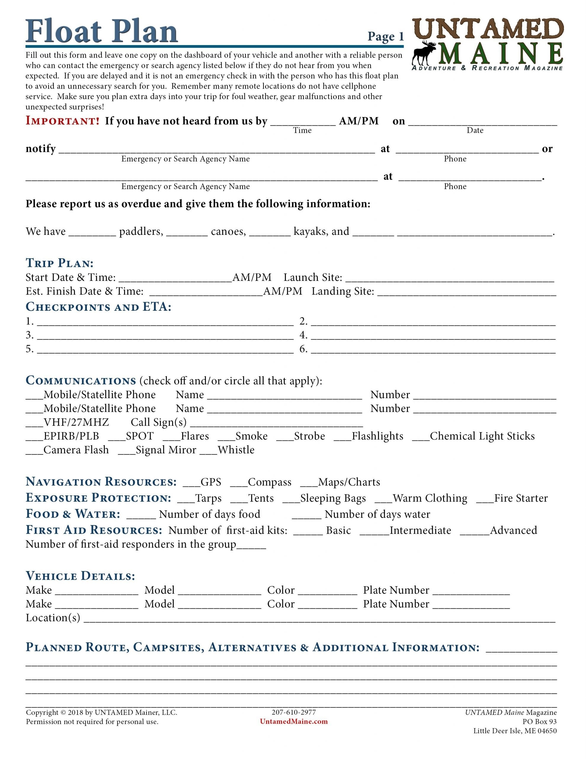Float Plan For Canoeing Kayaking And Boating UNTAMED Mainer