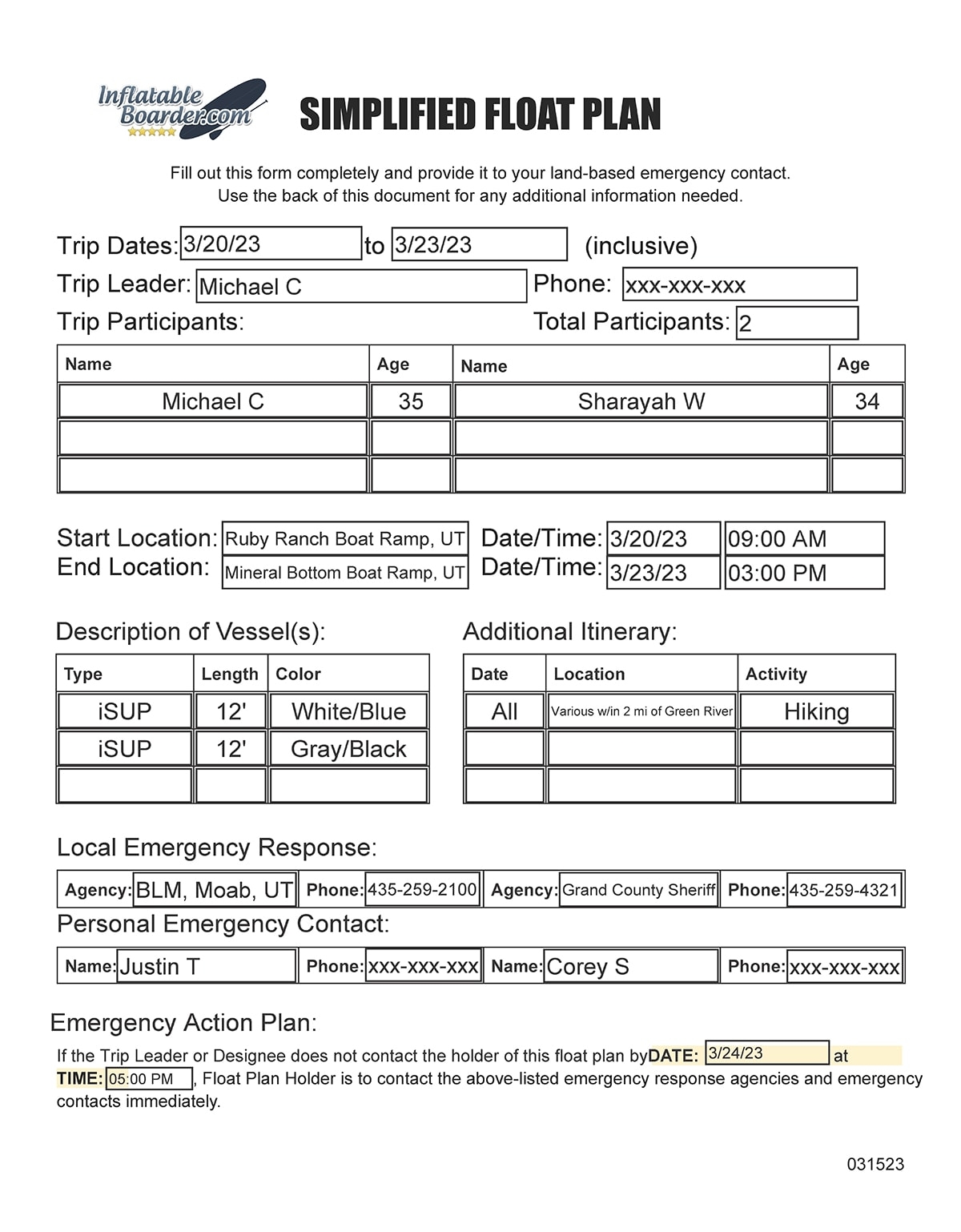 Float Plan Template