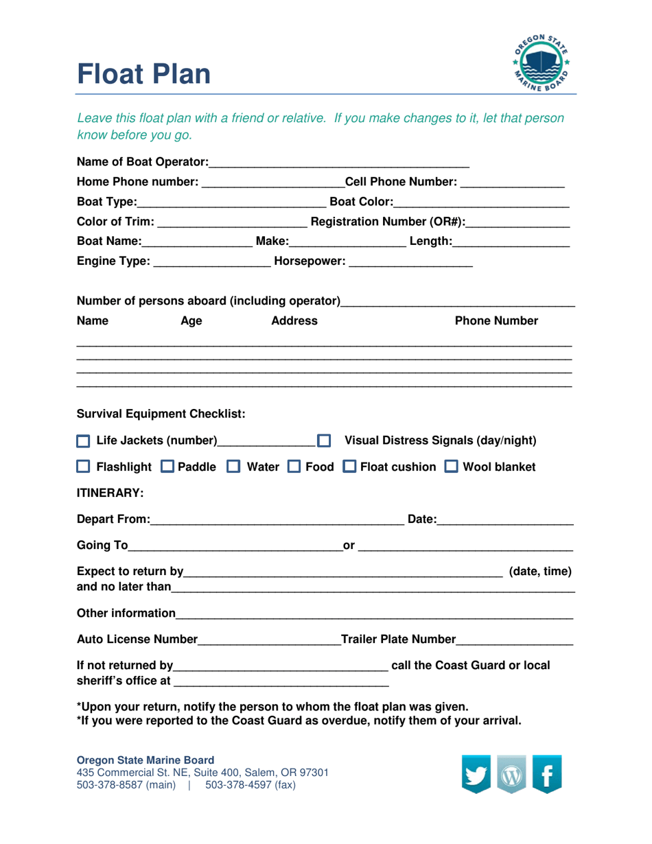 Oregon Float Plan Form Fill Out Sign Online And Download PDF