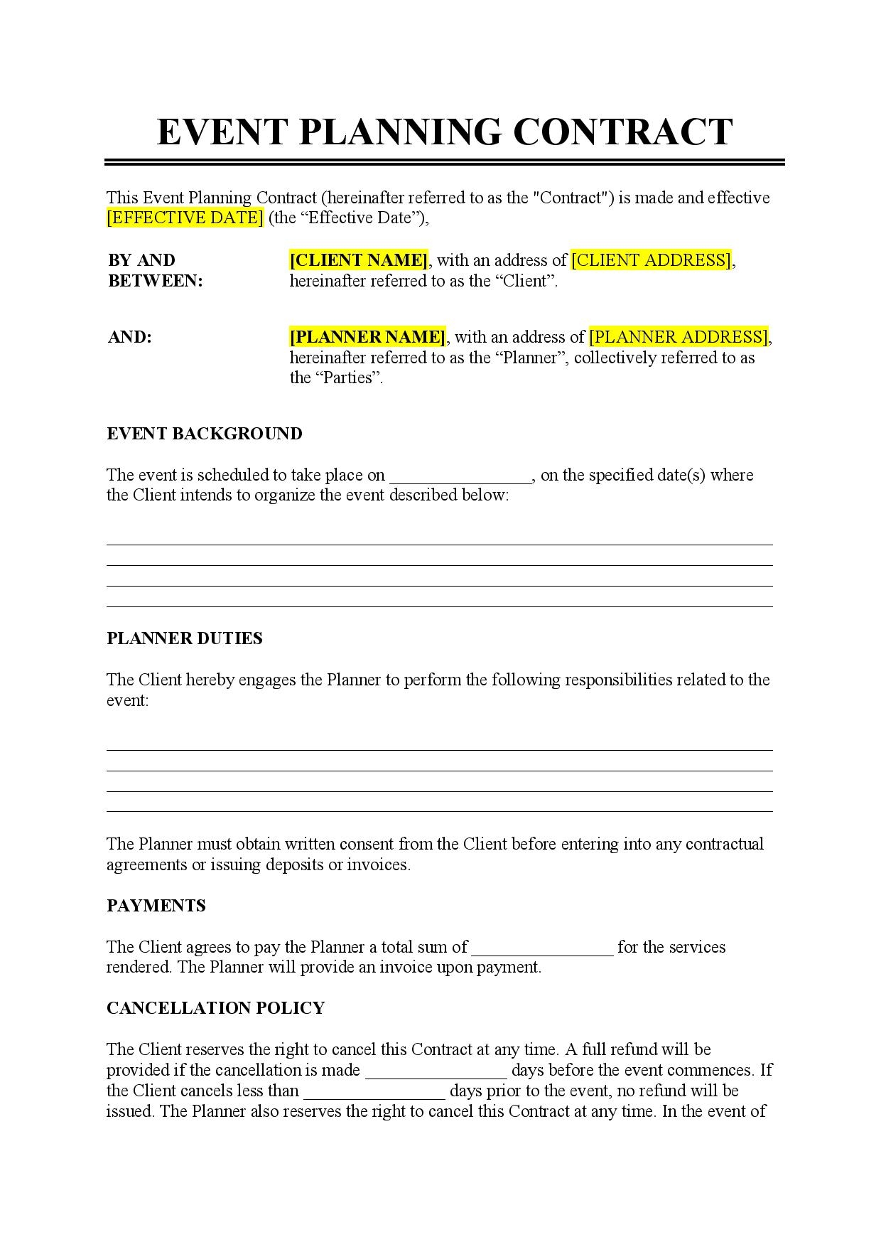 Event Planning Contract Template Free Download Easy Legal Docs