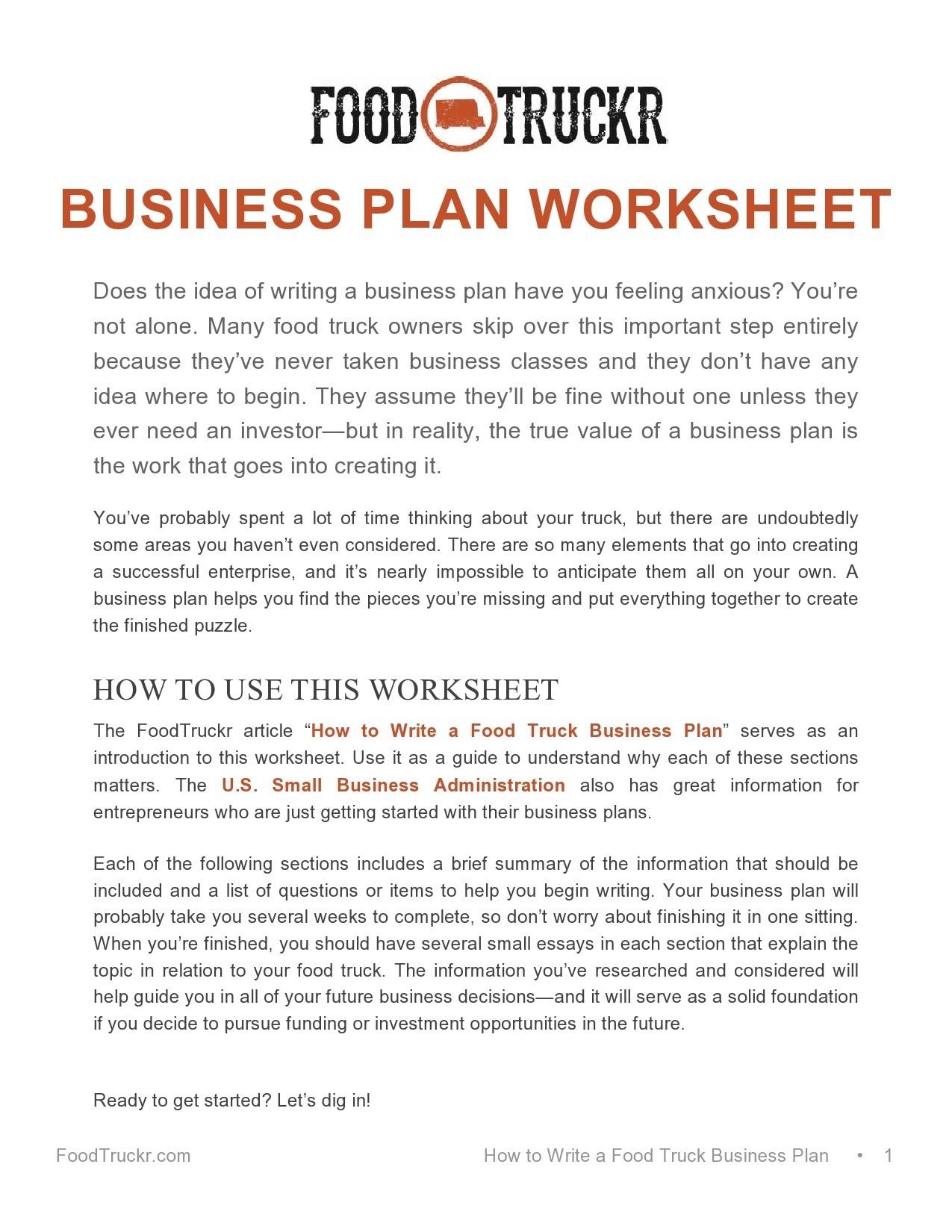 Free Food Truck Business Plan Template