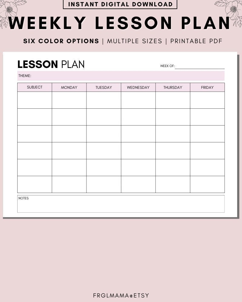 Printable Weekly Lesson Plan Template Preschool kindergarten Daily Lesson Plan Lesson Plan Book Download A4 A5 U0026 Letter PDF Instant Etsy