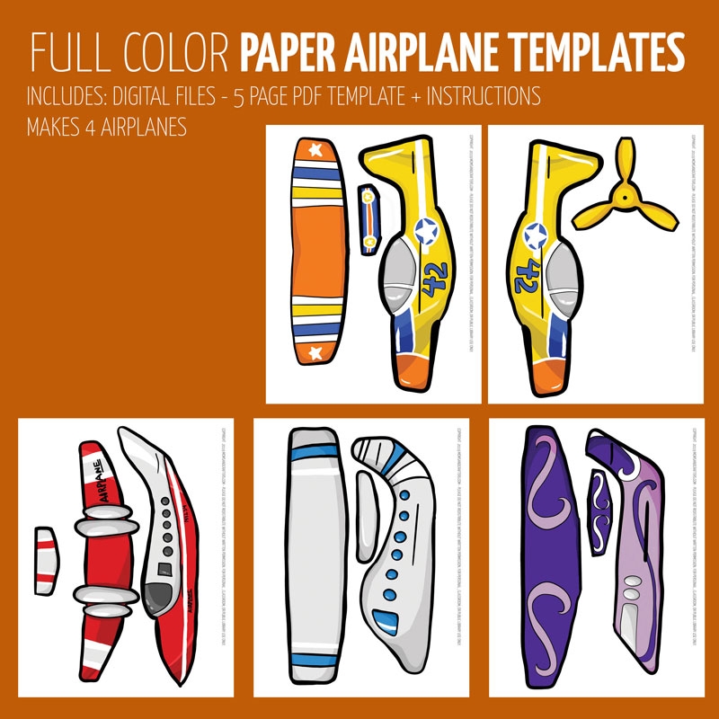 4 Styles Paper Airplanes Coloring Pages Color in Paper Craft Template Paper Toy Craft Instant Download Kids Craft Template Etsy