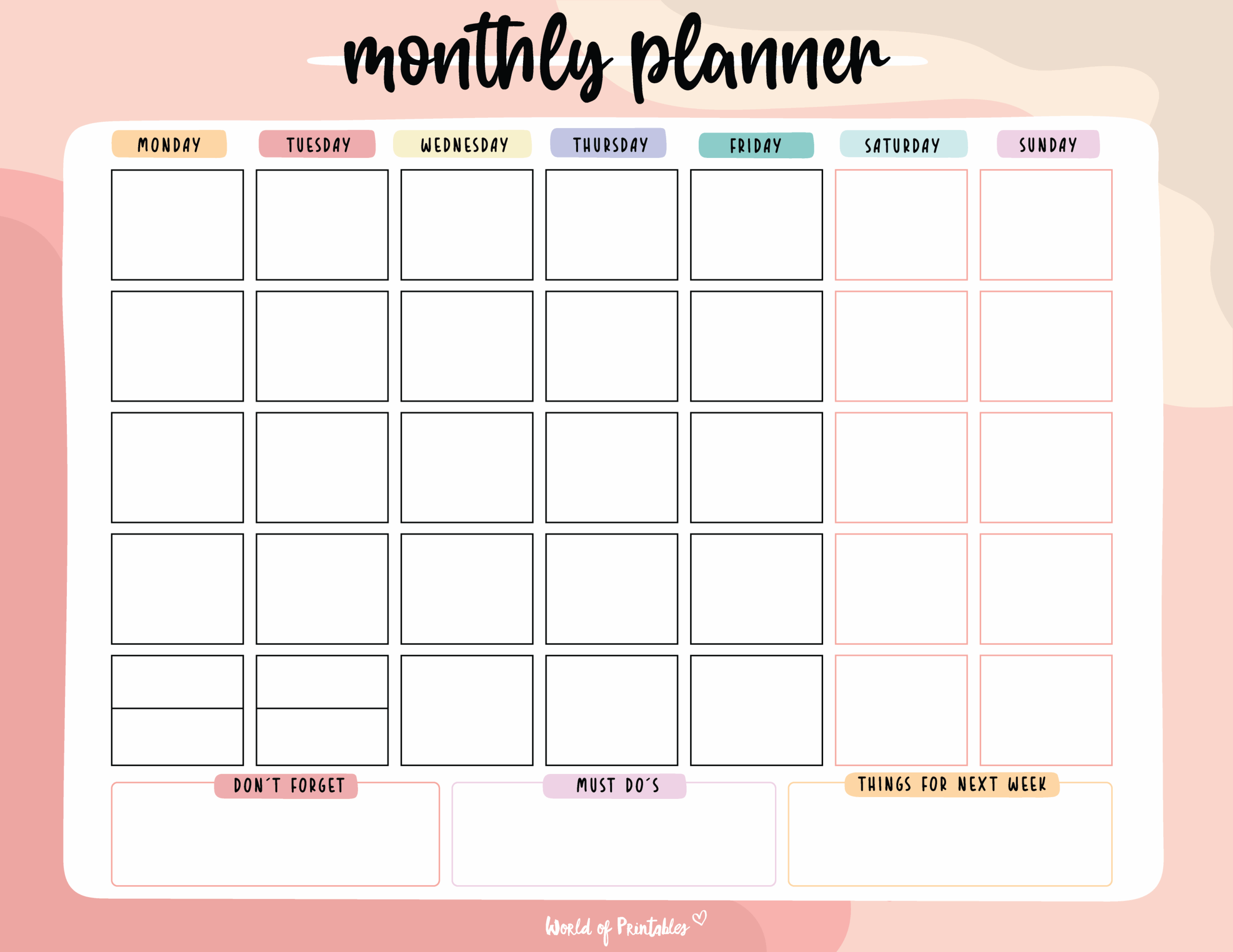 FREE Printable Monthly Planners World Of Printables