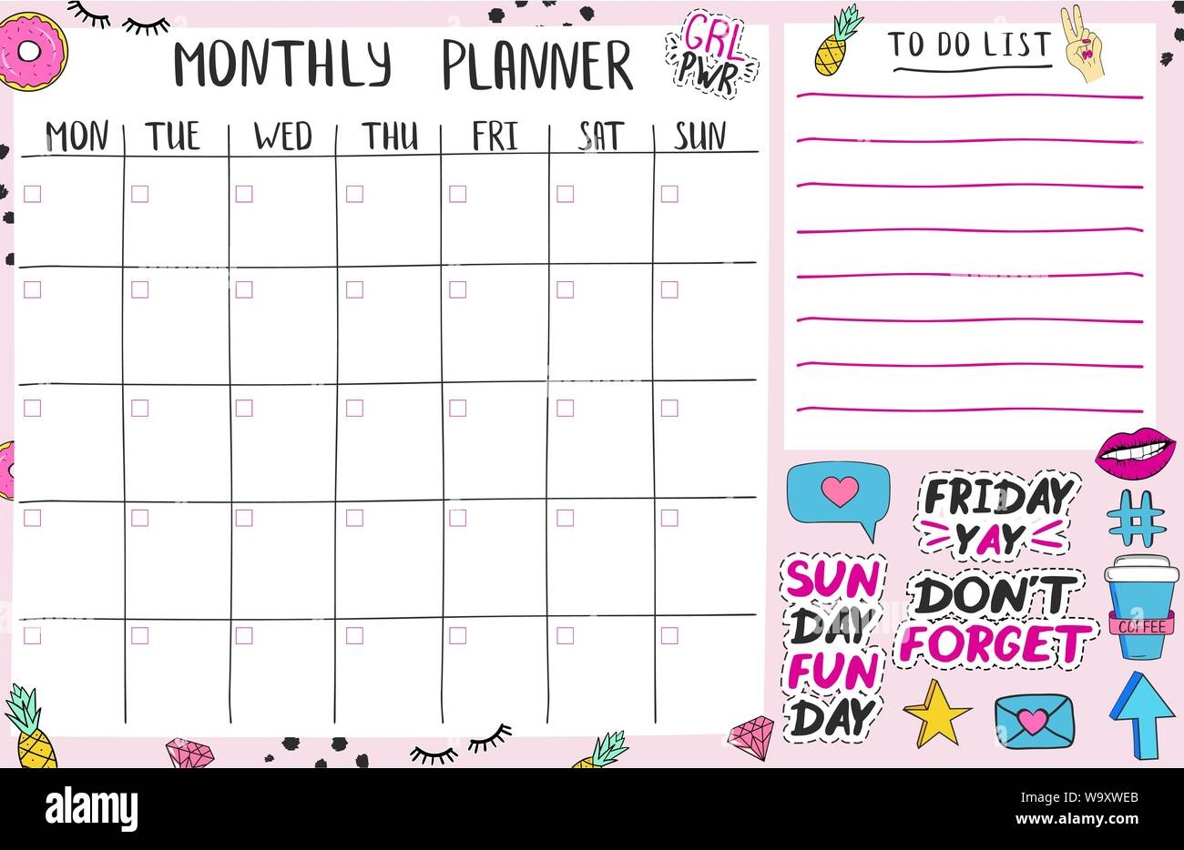 Monthly Planner Page Template With Cute Elents And Stickers Stock Vector Image U0026 Art Alamy
