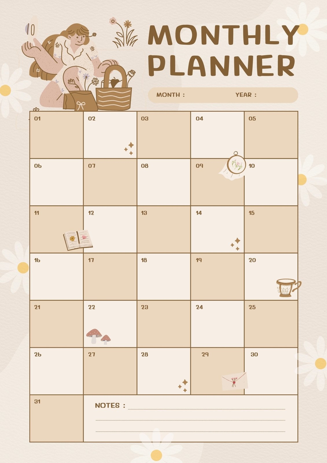 From important deadlines to exciting events, our cute monthly planner template will help you stay focused and motivated throughout the month. So why wait? Download your free template today and start planning your days in style!