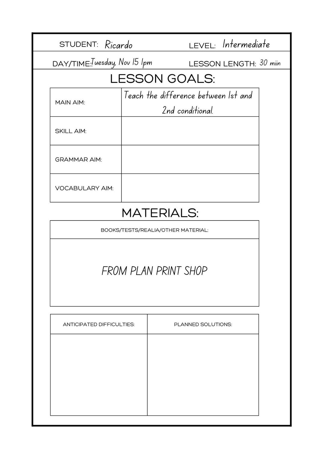 Lesson Plan Template For ESL TEFL Teachers Lesson Plan Printable Worksheets Library