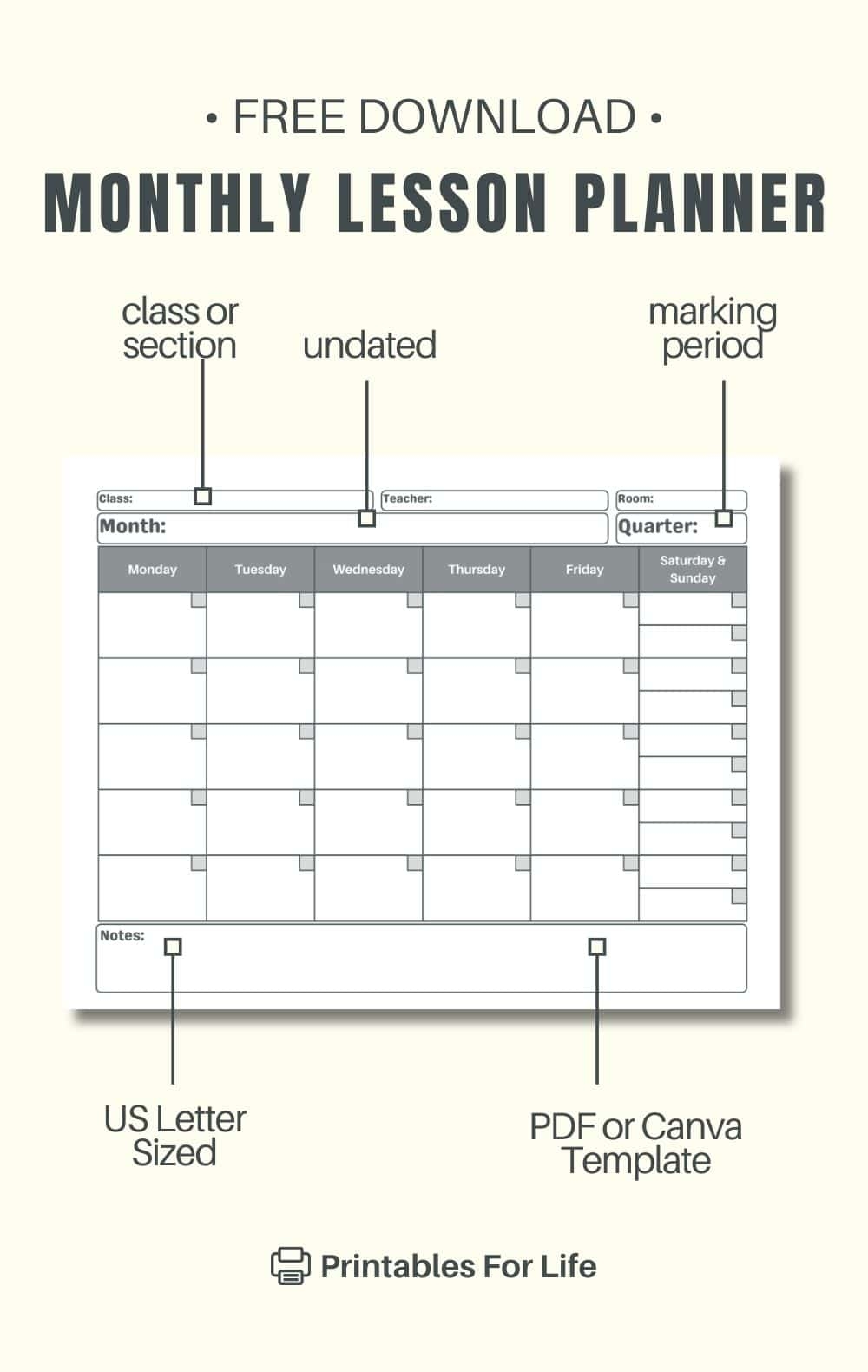 Say goodbye to the days of scrambling to put together lesson plans at the last minute. With our Free Printable Monthly Lesson Plan Template, you can stay organized, focused, and prepared for whatever comes your way in the classroom.