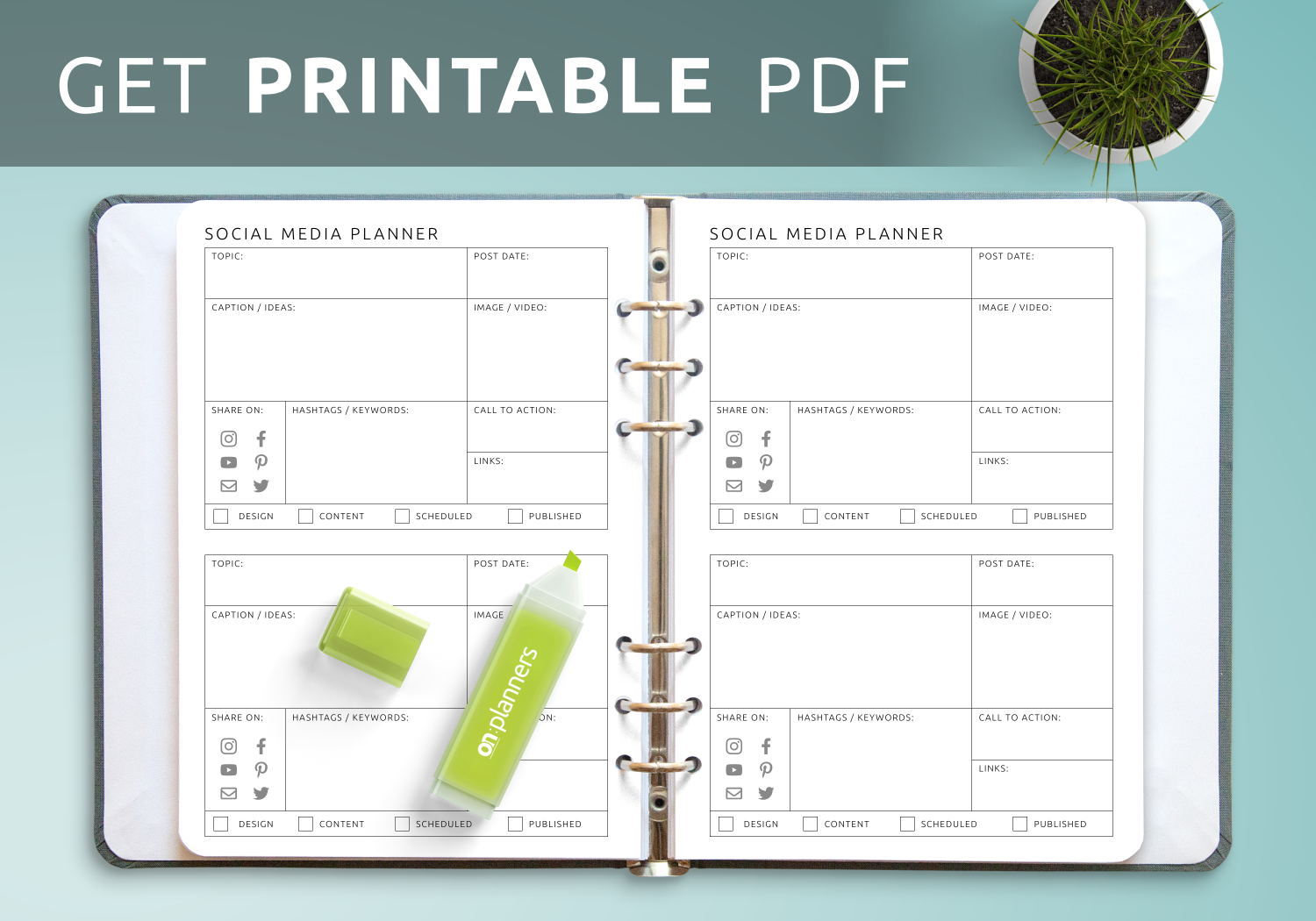 Social Media Planner Template Printable PDF