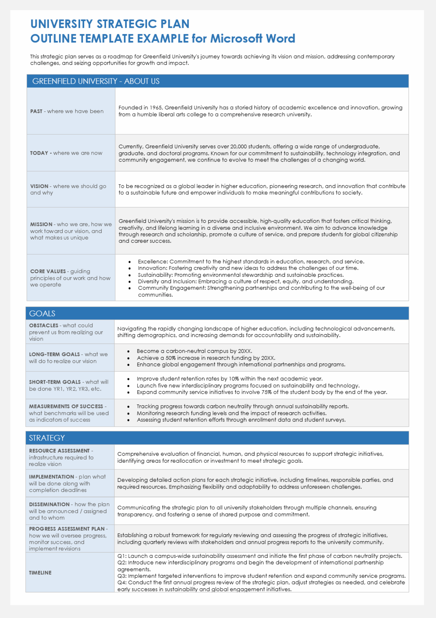 Free Sample Strategic Plan Template