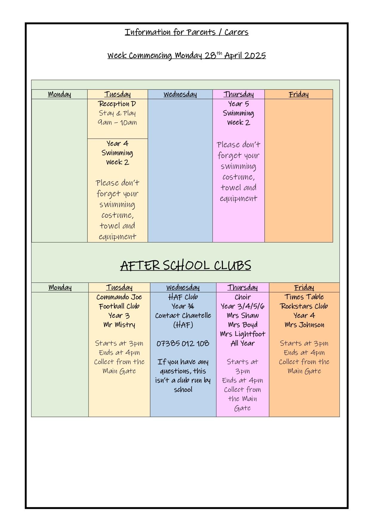 Information For Parents Carers W C 28th April St Matthews CofE Primary School