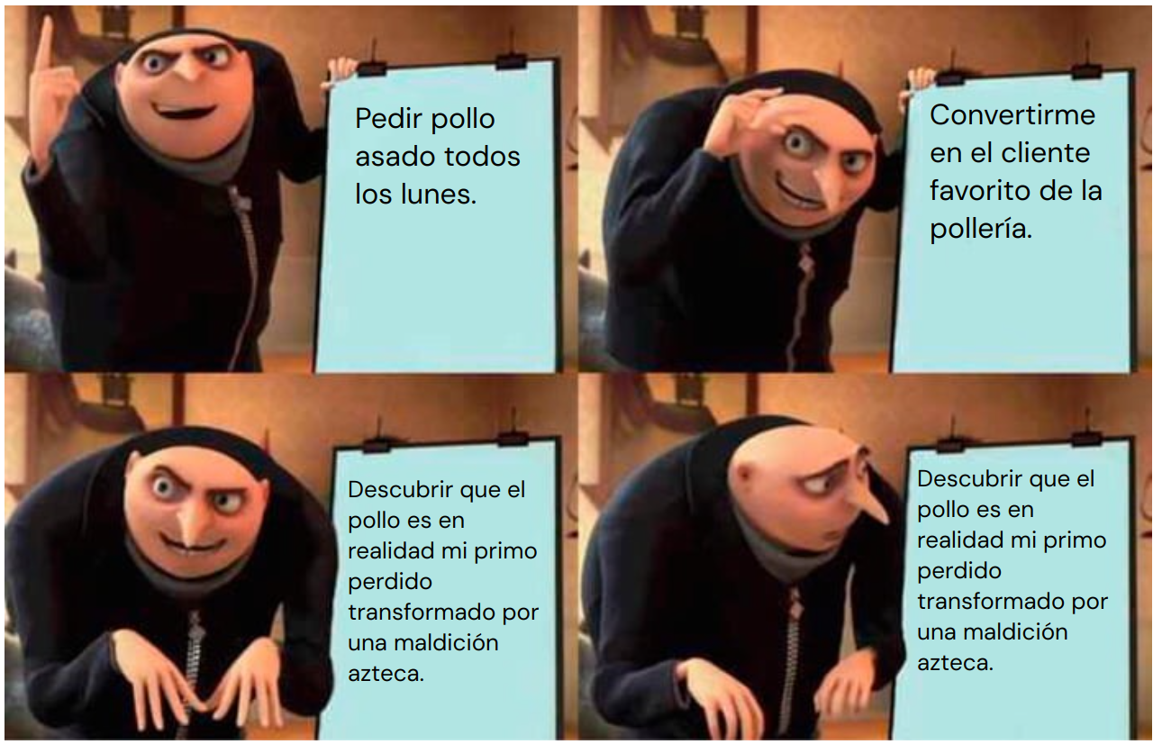 The Gru Plan meme template features a series of panels with Gru, the supervillain from the Despicable Me franchise, laying out a plan. Users can fill in the panels with their own text, creating a funny and engaging meme that can be shared on social media platforms like Twitter, Instagram, and Facebook.