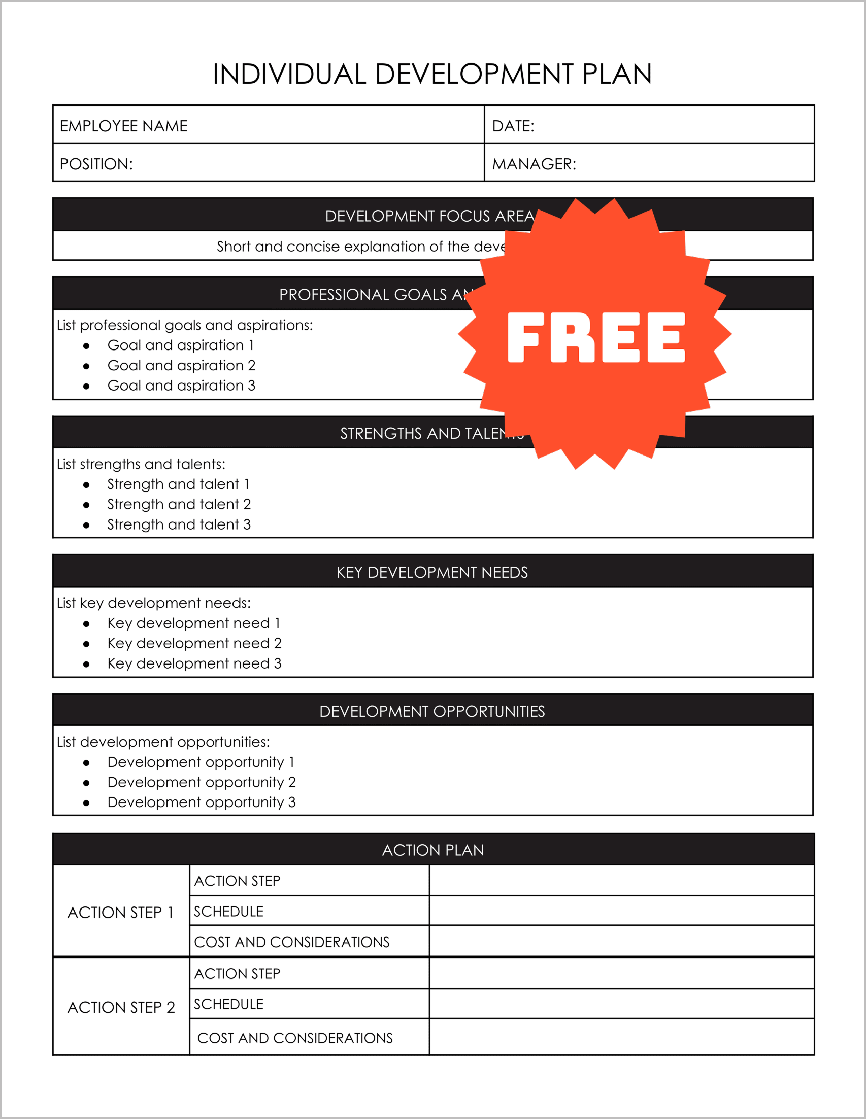 Free Editable Individual Development Plan Template