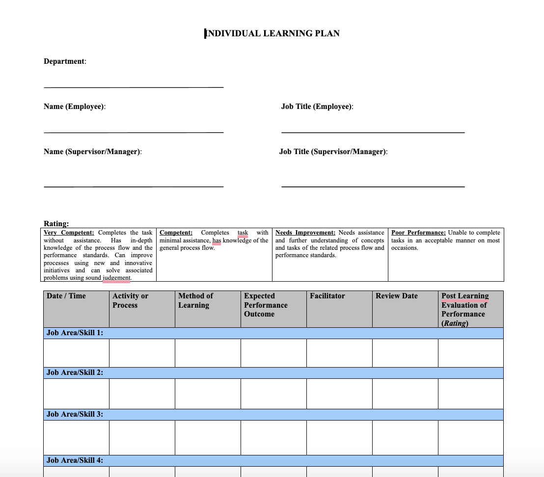 Individual Learning Plan Template
