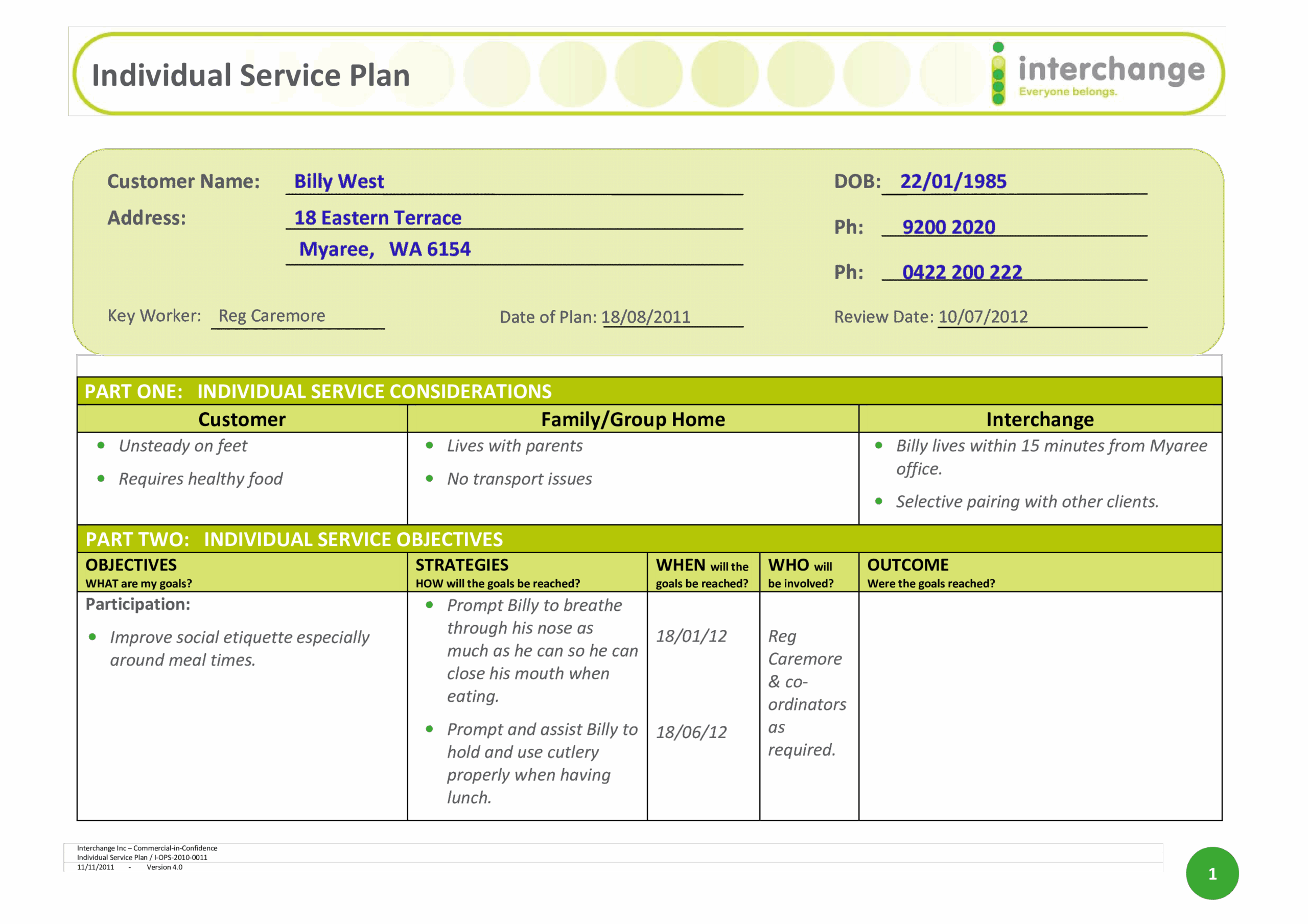 Individual Service Plan Templates At Allbusinesstemplates