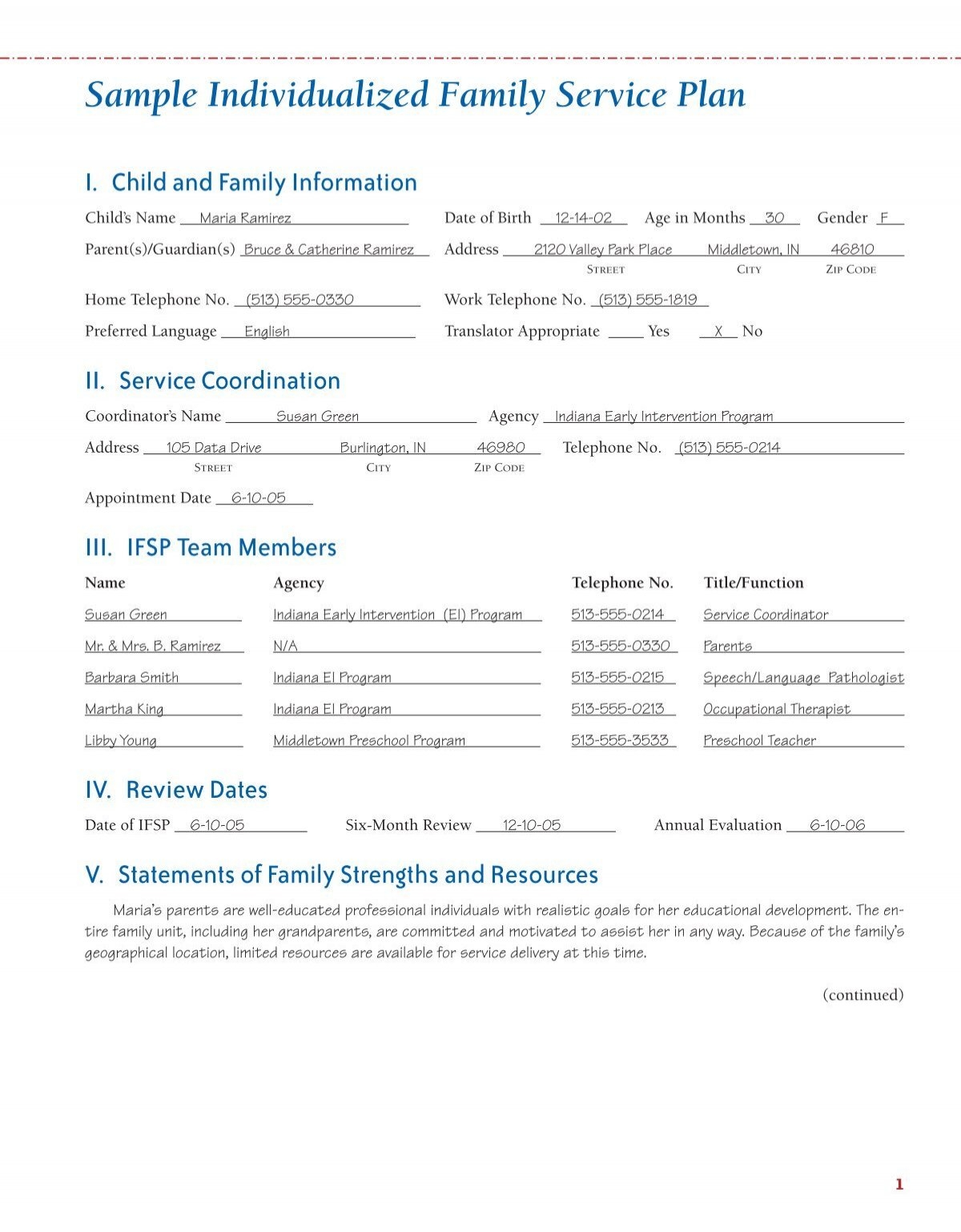 Sample Individualized Family Service Plan 2011Fall Chicago Home
