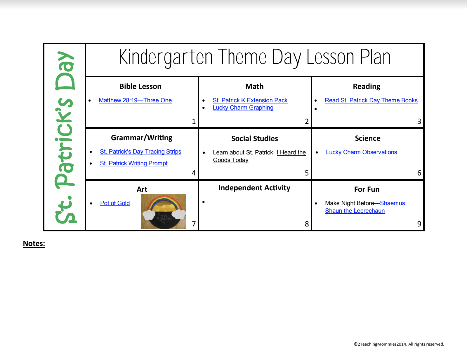 Kindergarten Unit Plan Template