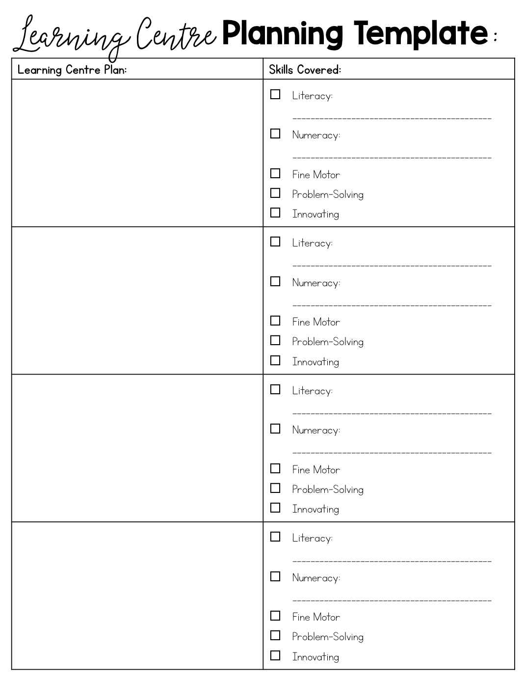 Planning Templates For FDK Apinchofkinder
