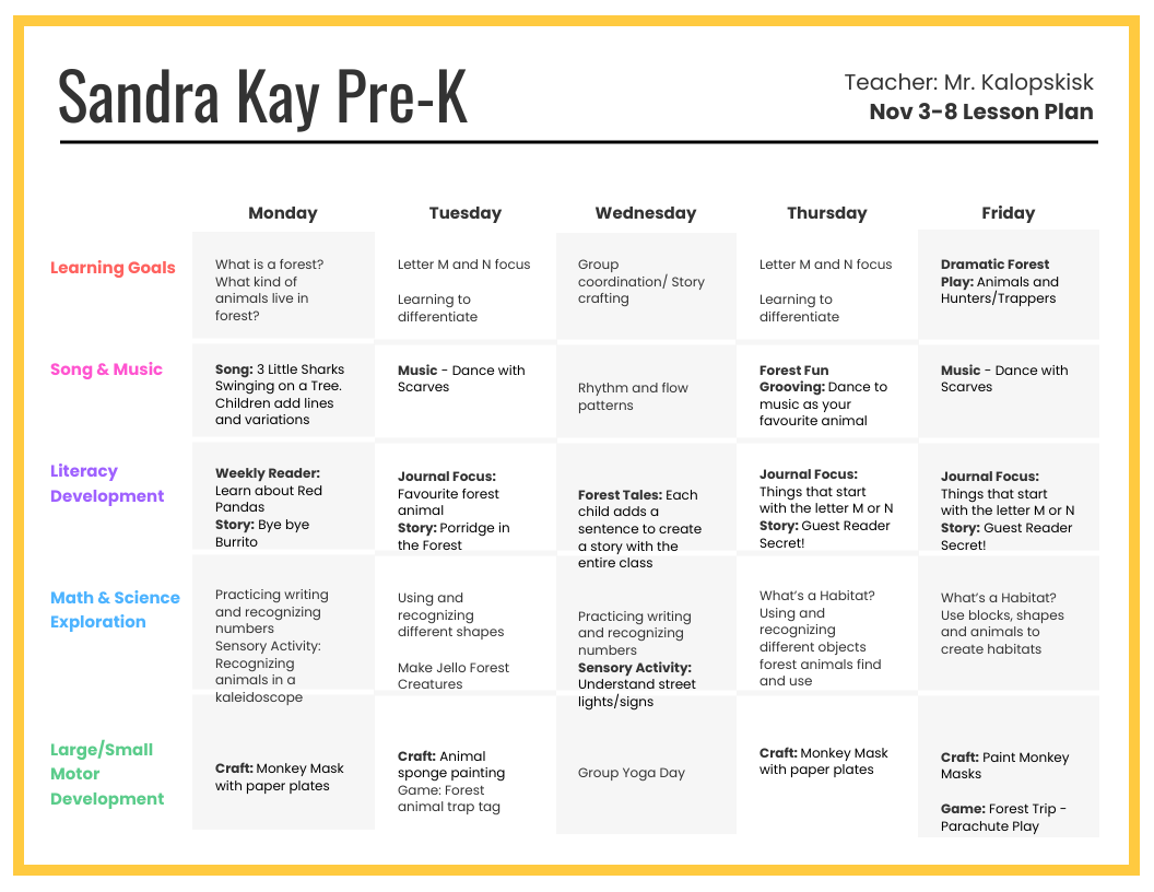 Free To Print Preschool Weekly Lesson Plan Templates Canva
