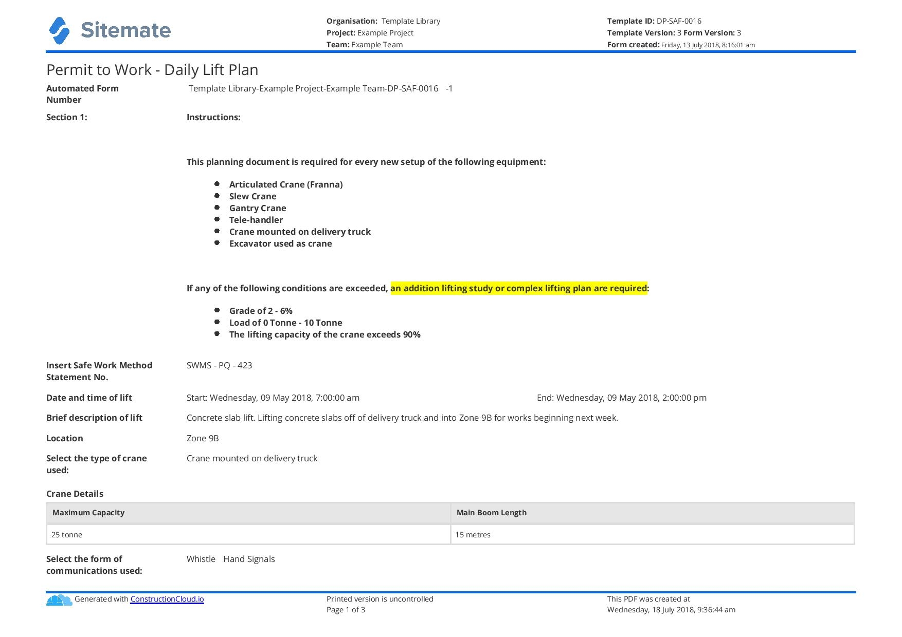 Daily Lift Plan For Cranes Template Use This Template Free
